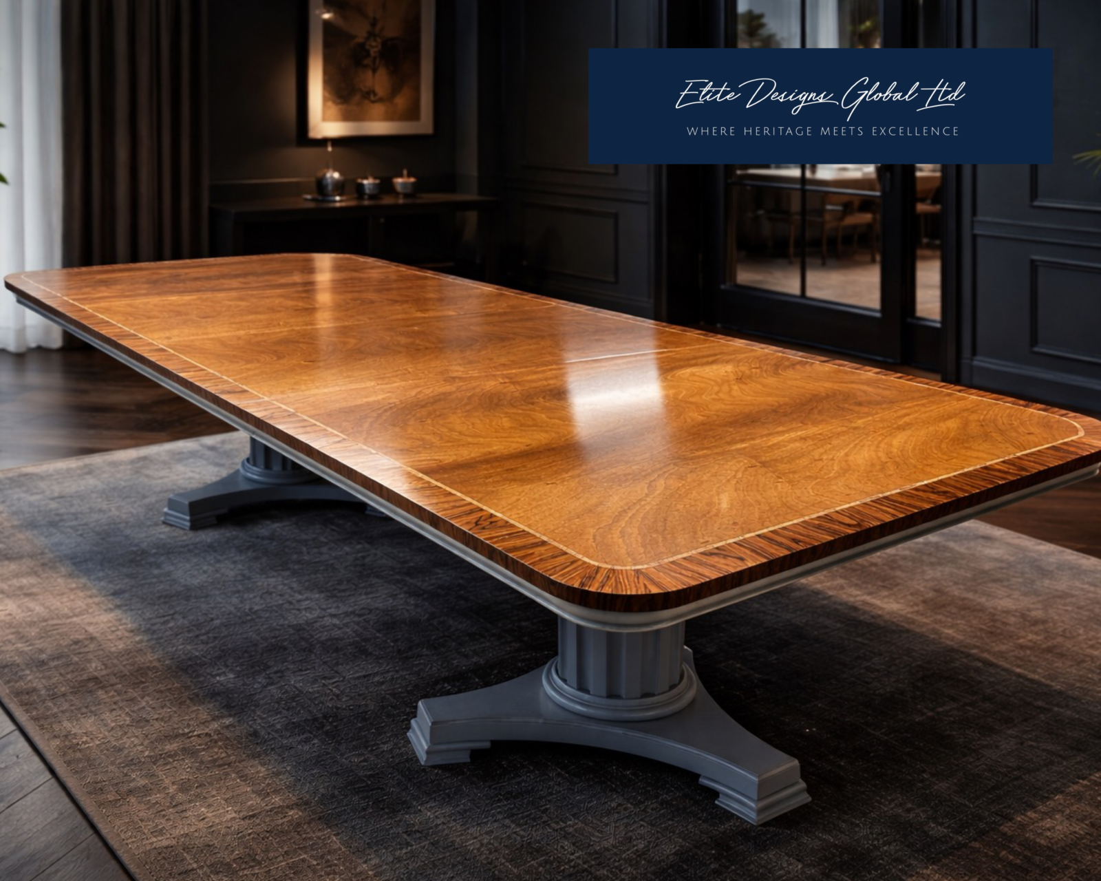 Exquisite Art Deco style Dining Table French Polished and finished in Farrow and Ball Parma grey