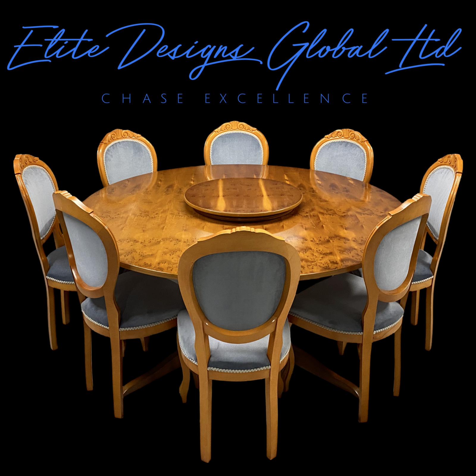Elite Art Deco style Designer Burr Yew tree dining room set