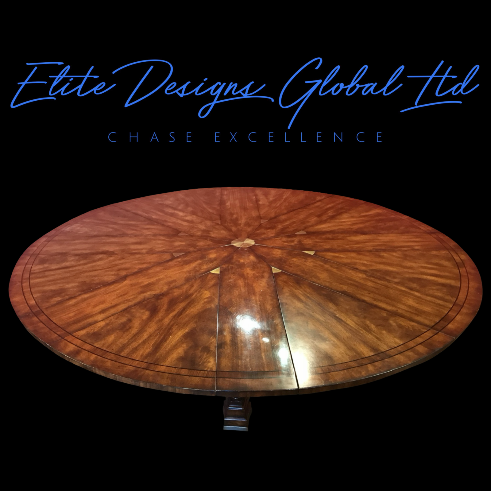 💫 Elite Sunburst flame mahogany circular dining tables made to any size and style