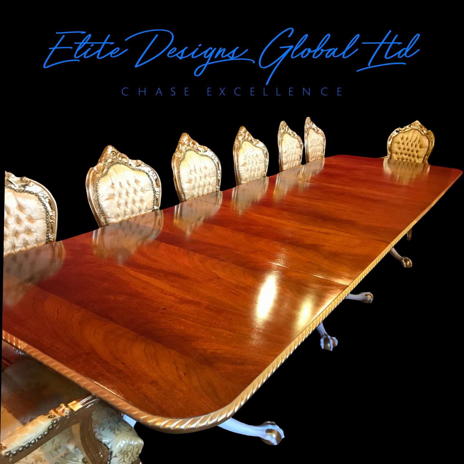 Elite World-Class Bespoke Designer Grand Regency Style Flame Mahogany Dining Table