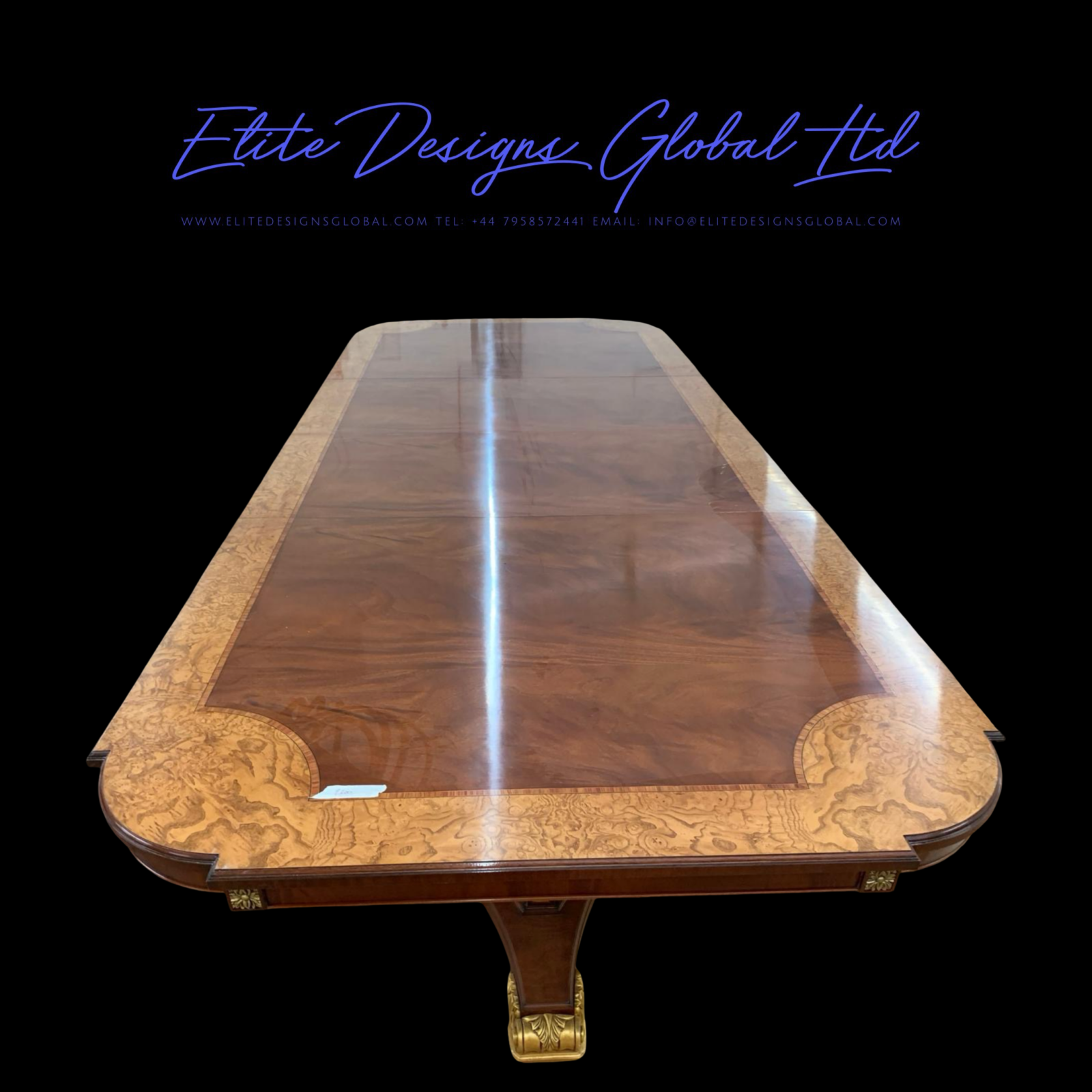 Elite 10ft Designer Louis style Burr Walnut Marquetry and gold palace grand dining table