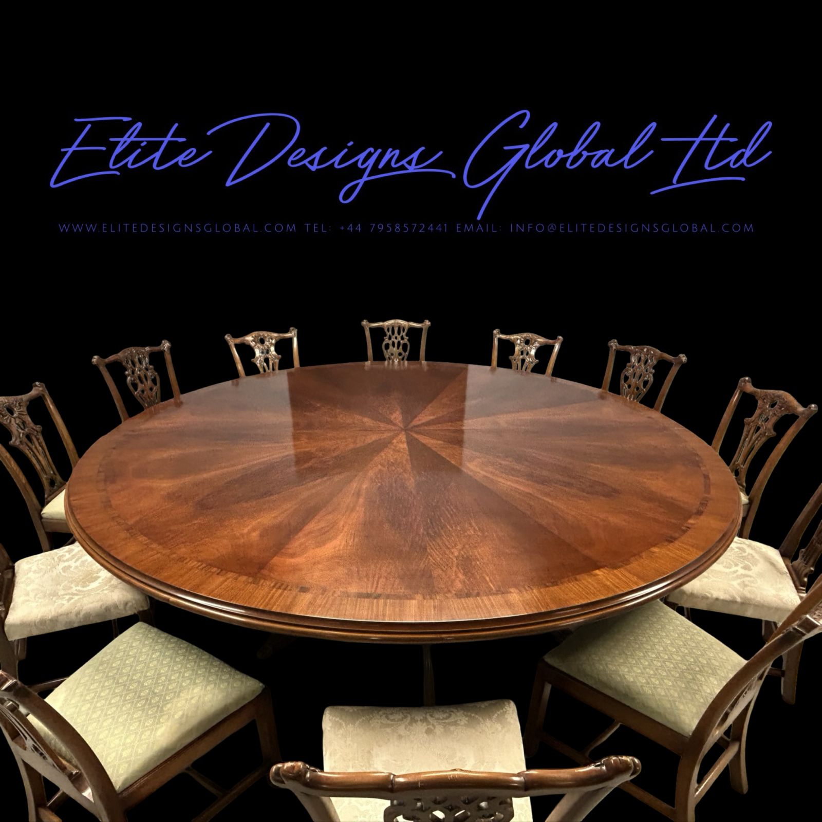Magnificent 9ft Grand Circular Sunburst Mahogany Table – A Historically Significant Masterpiece