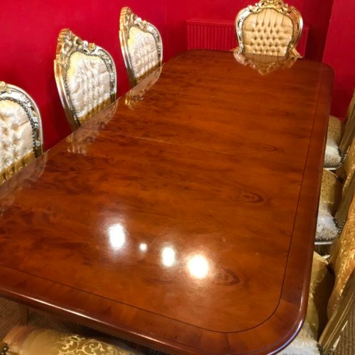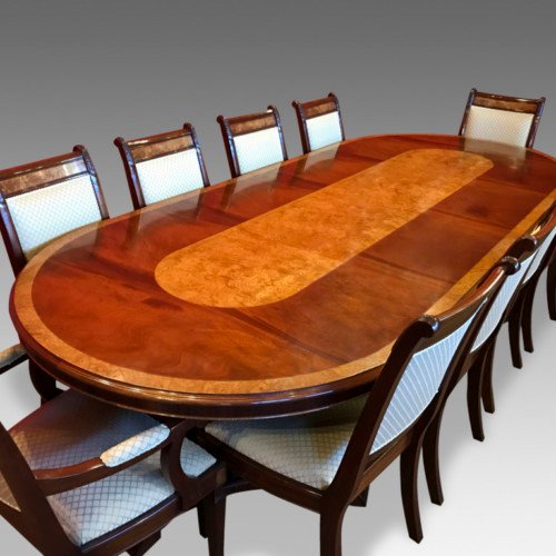 10.4ft Designer Grand Regency style Burr Walnut, Ash, Mahogany dining set