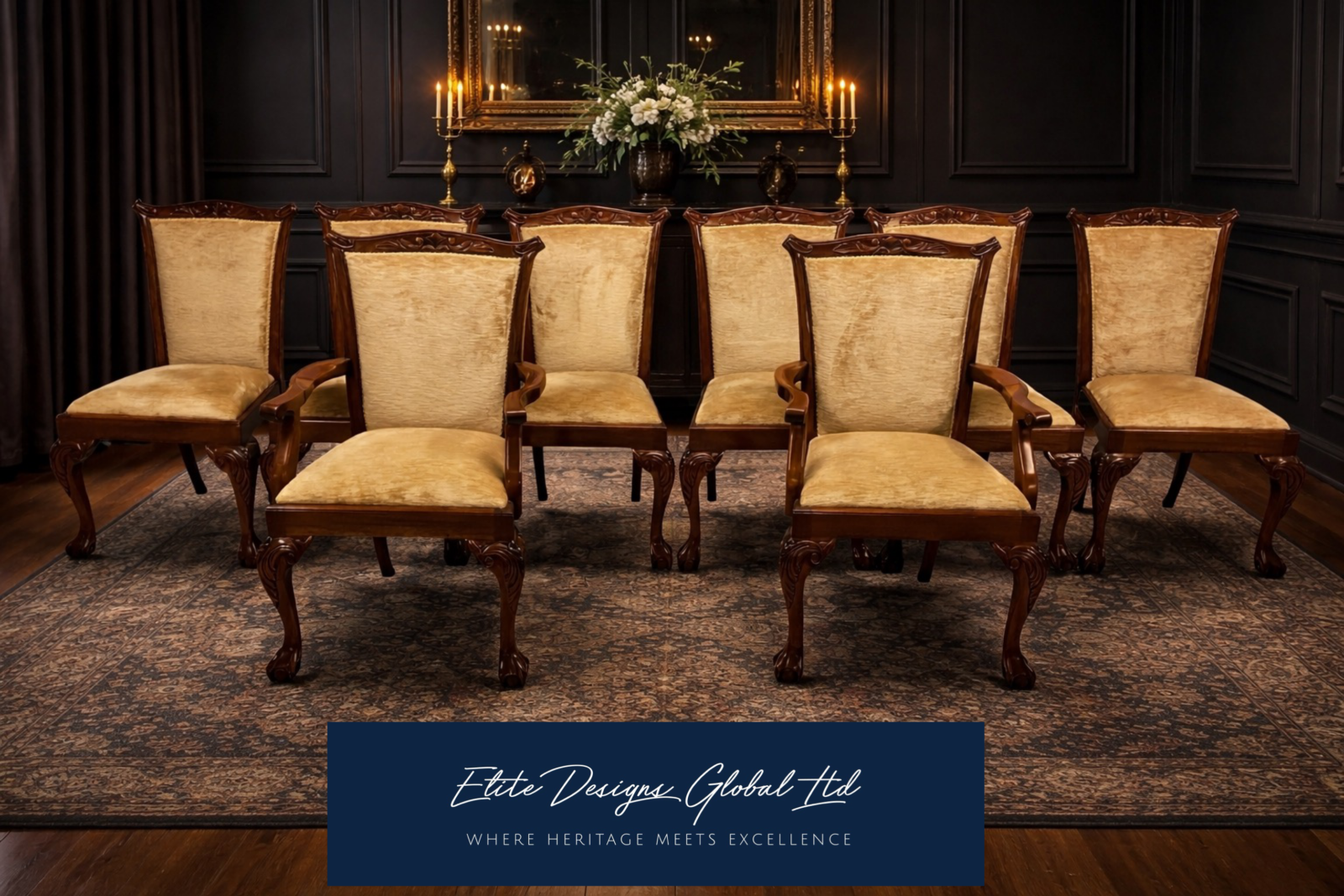 Elite Gold Louis XVI style dining chairs