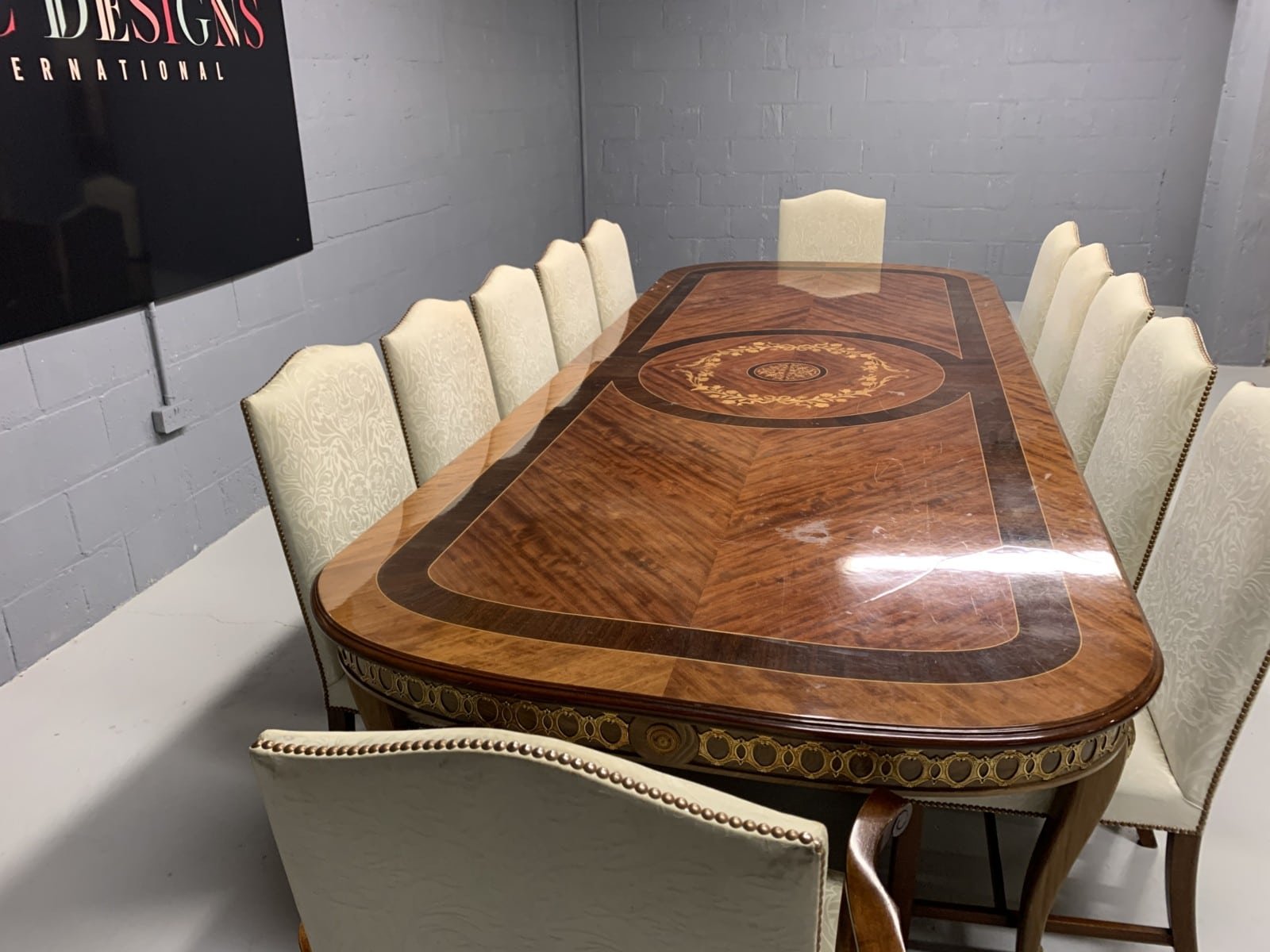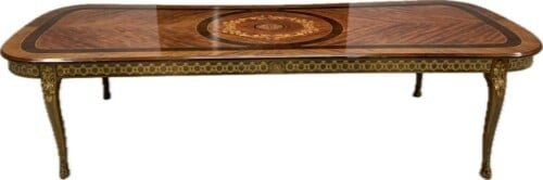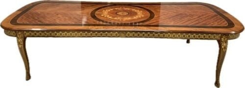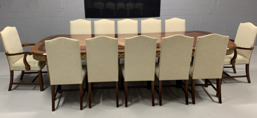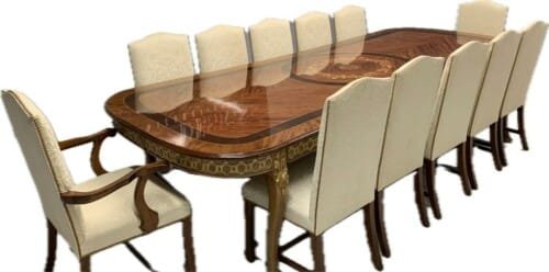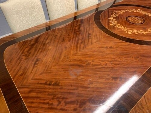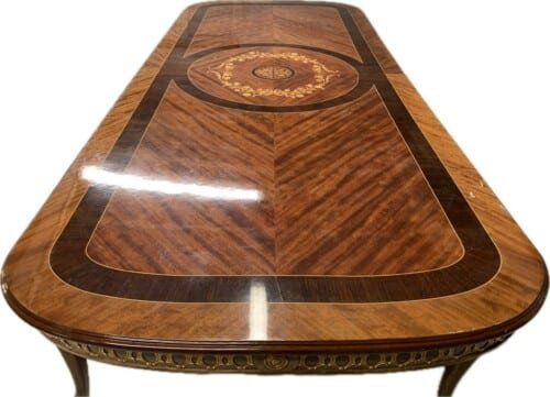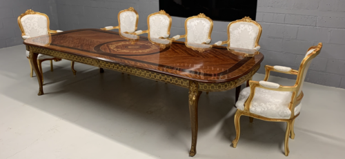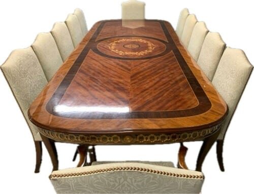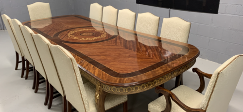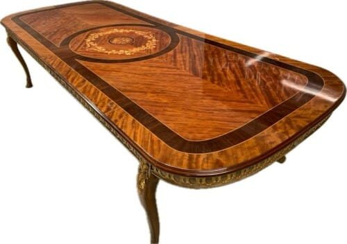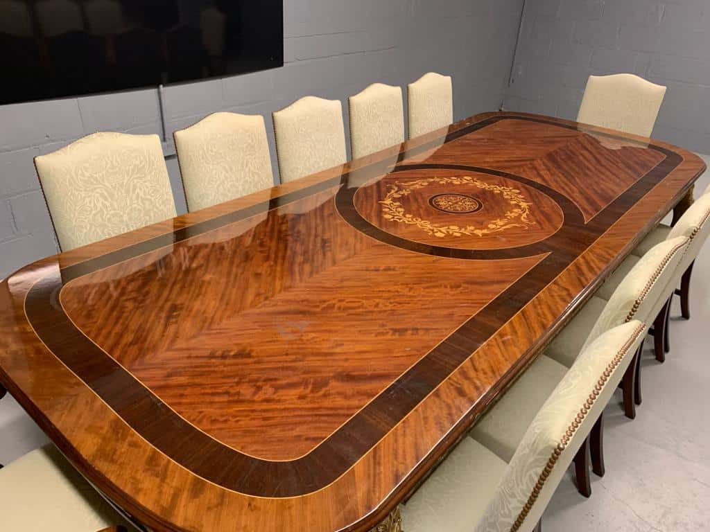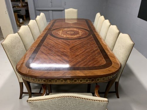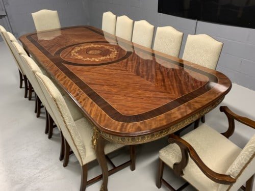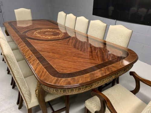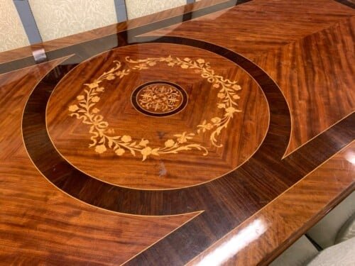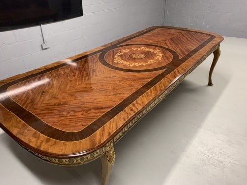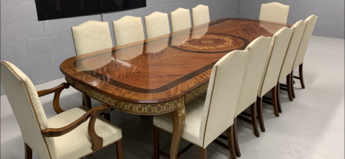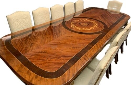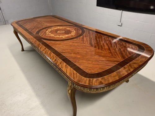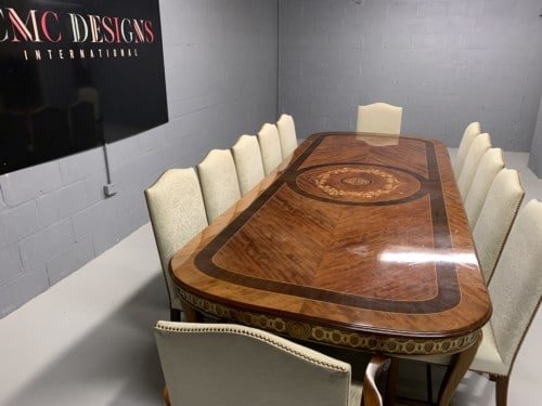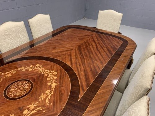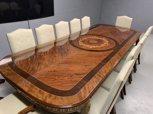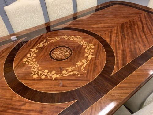 A simply exclusive gorgeous Grand Elite designer Burr Maple, rosewood Marquetry dining table.