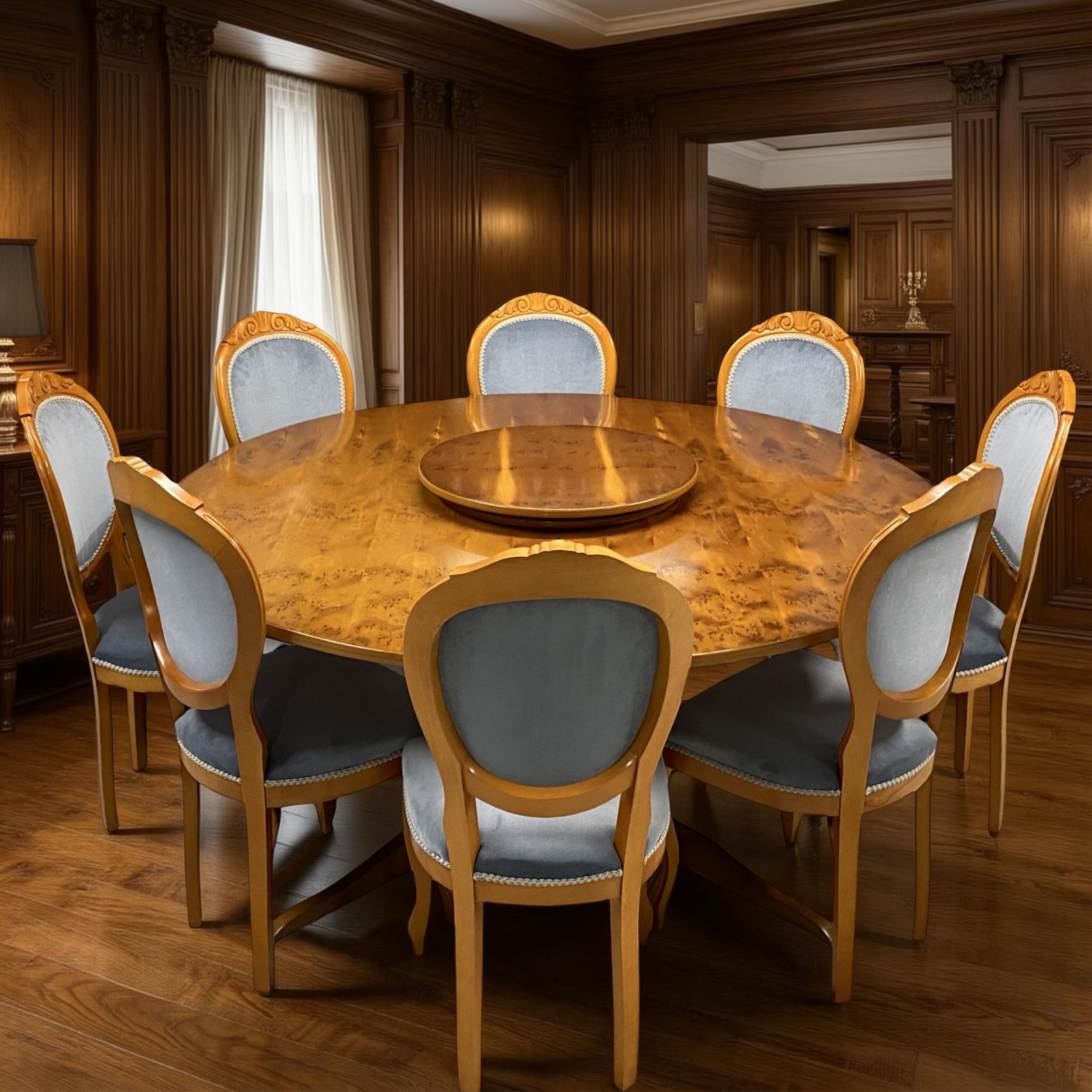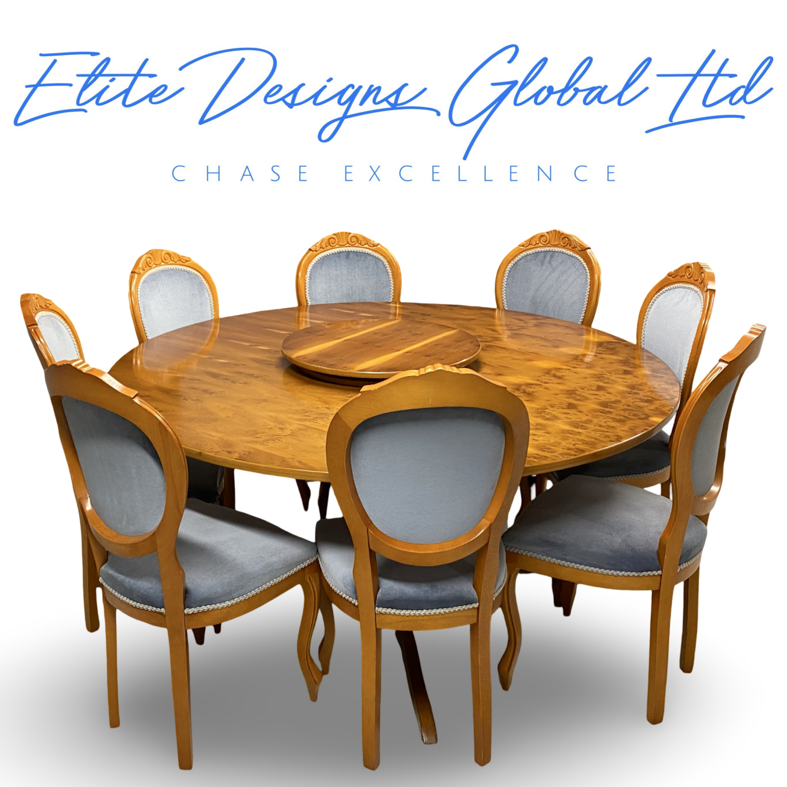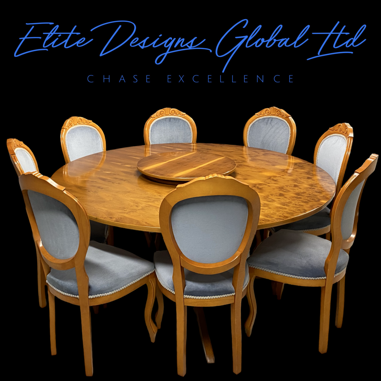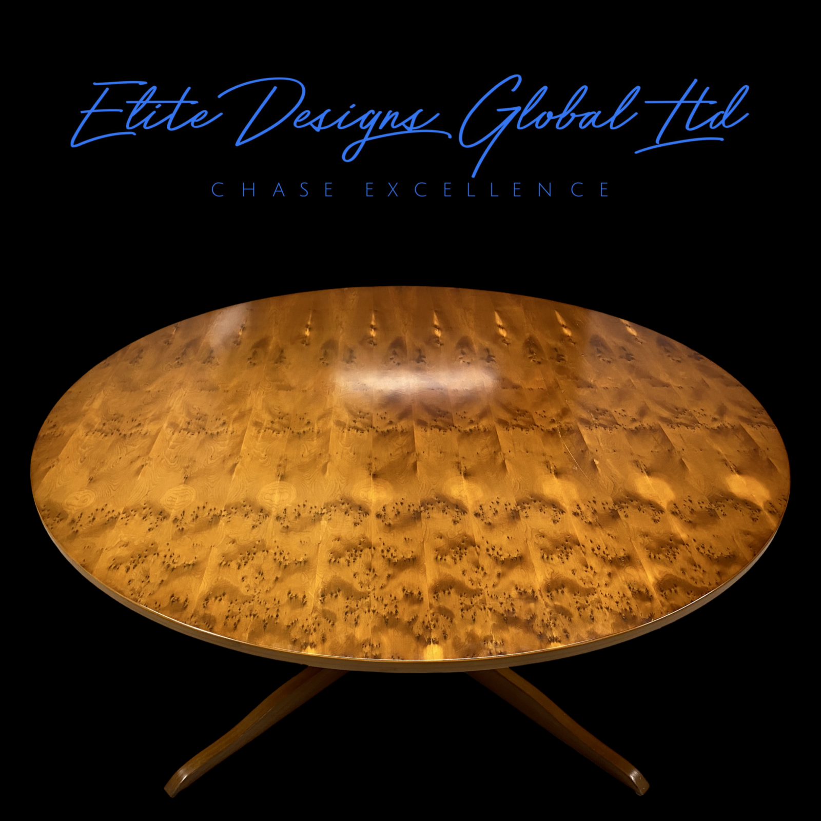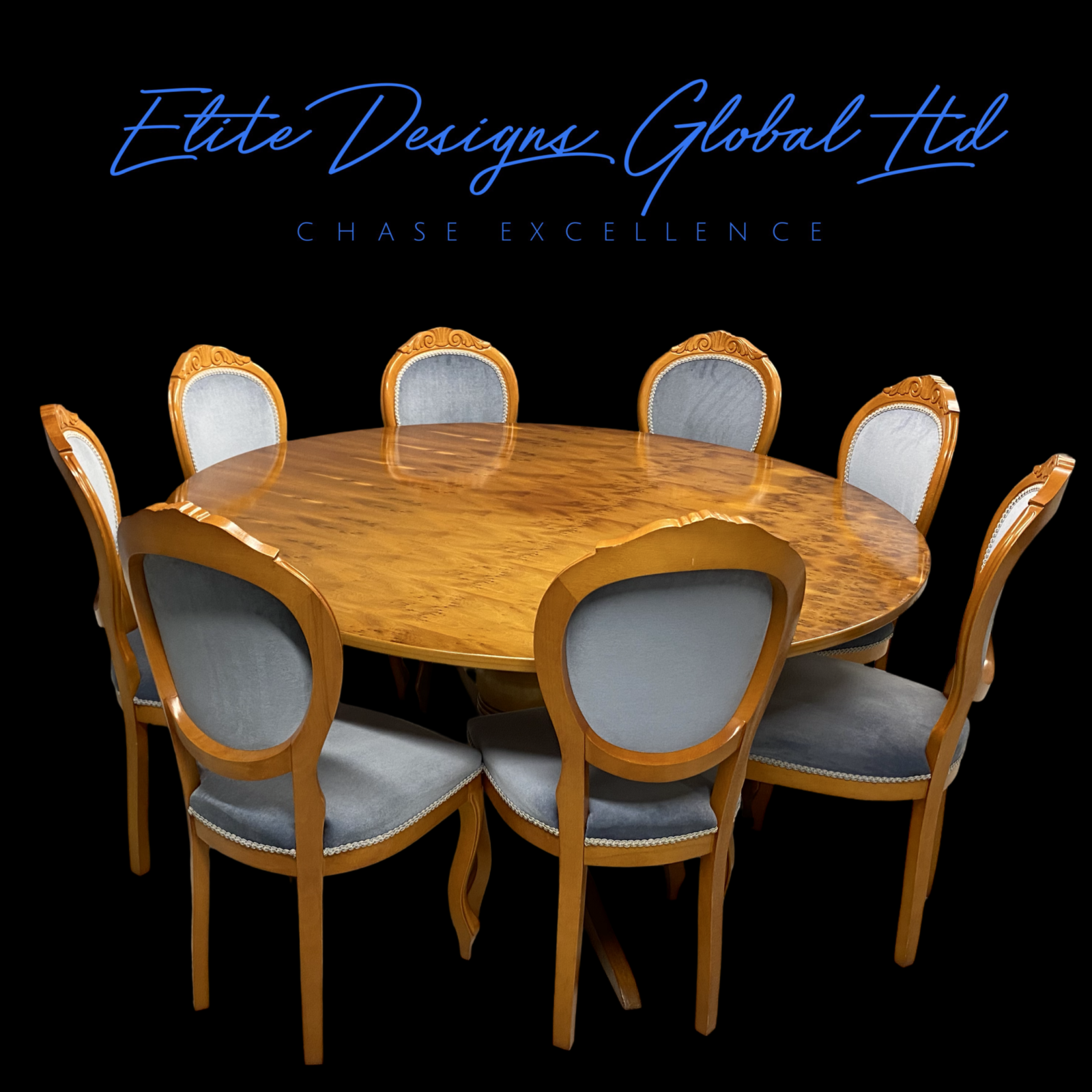 Elite Art Deco Style Burr Yew Dining Table & 8 Palace Balloon Back Chairs