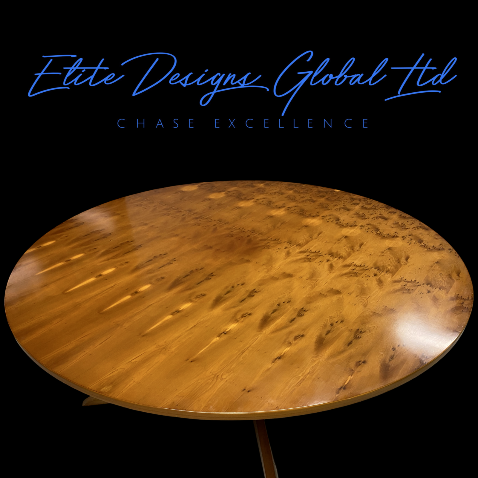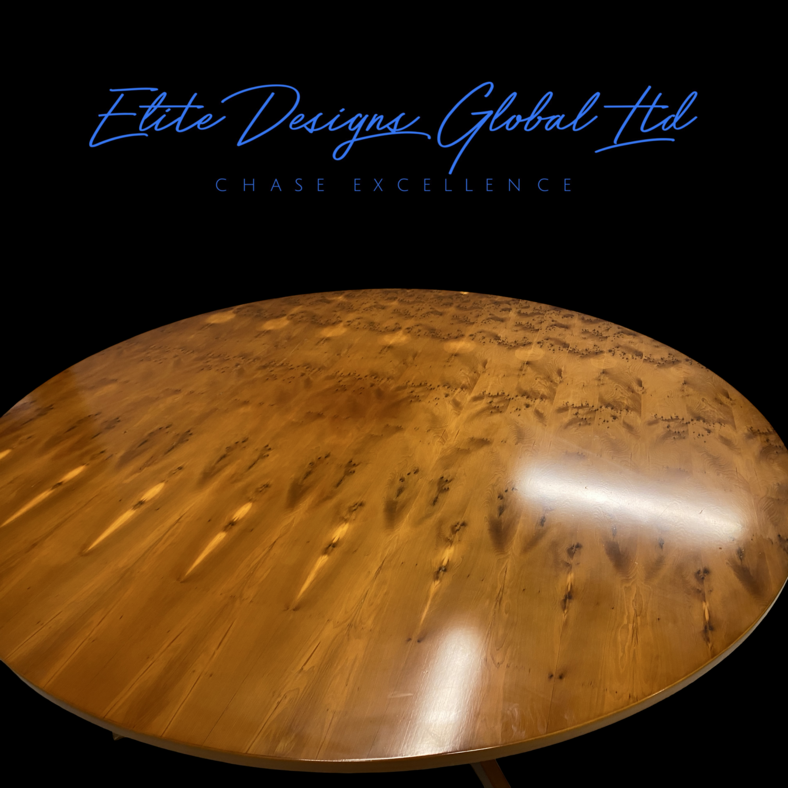 The Burr Yew top displays exceptional natural figuring across its entire surface — warm golden tones shifting beautifully under light.