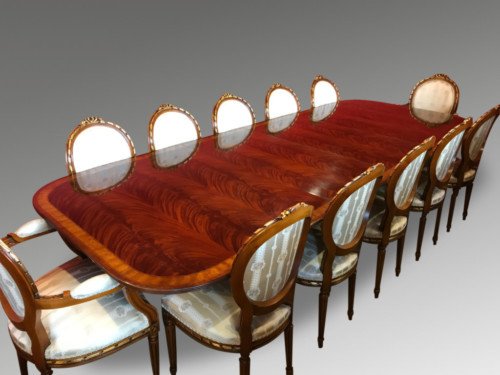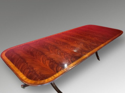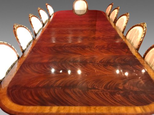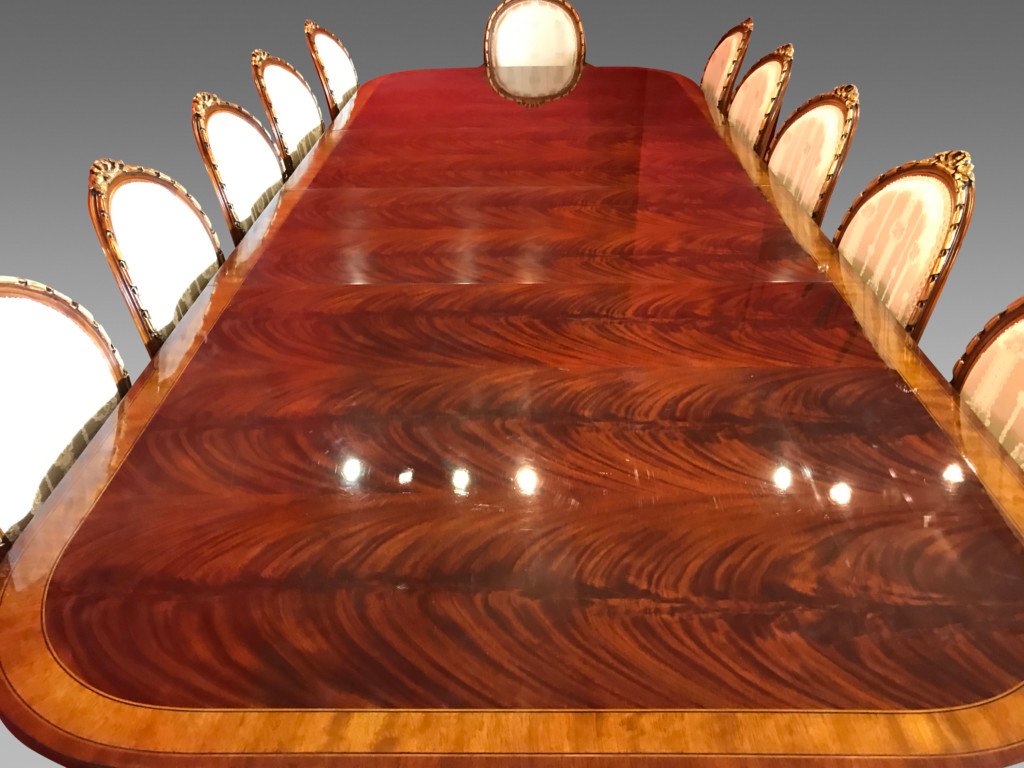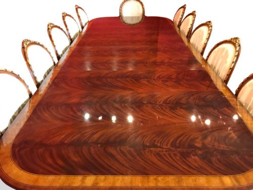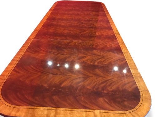 Magnificent Designer Grand Regency style Grand Flame mahogany & Satin wood inlay dining table.