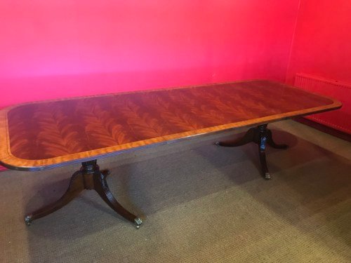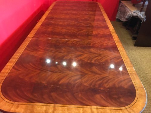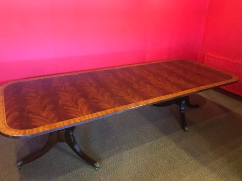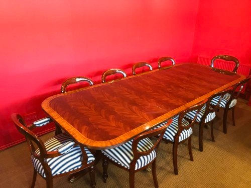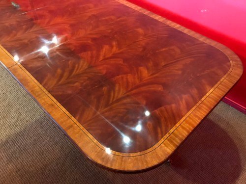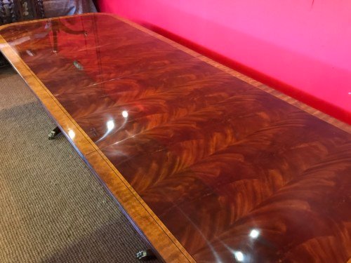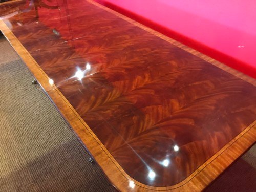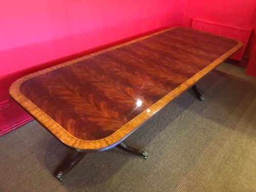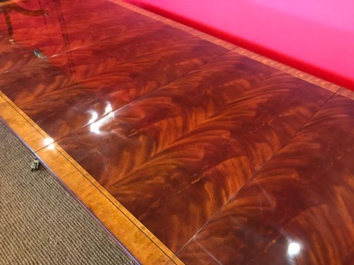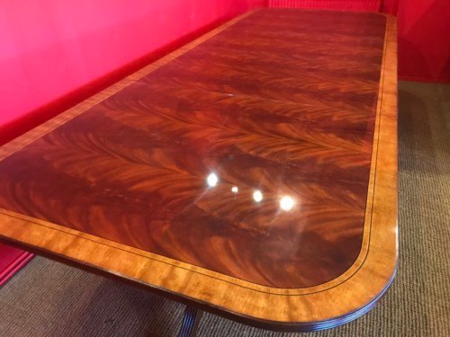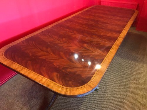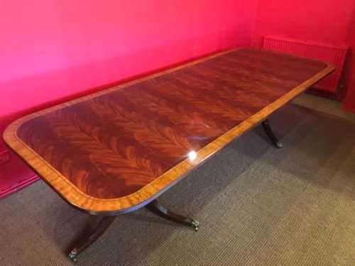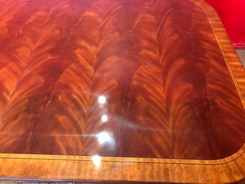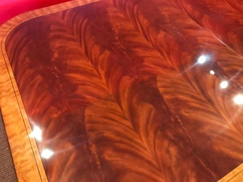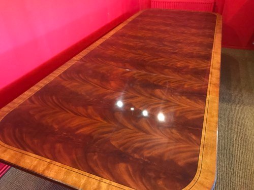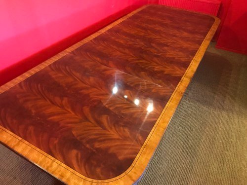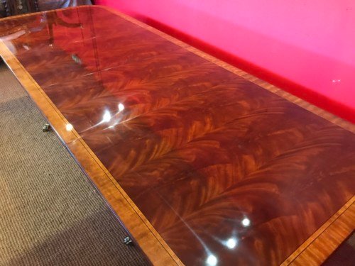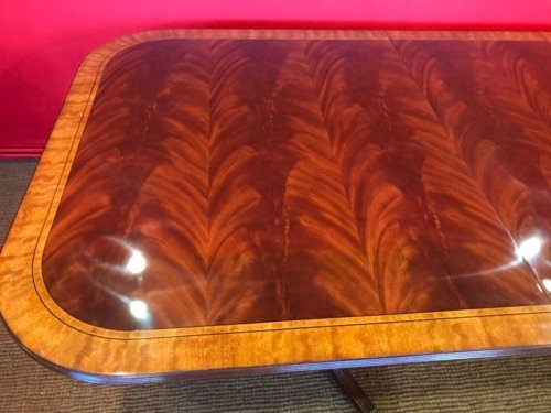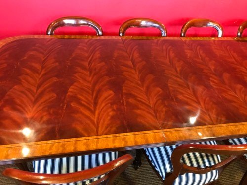 Magnificent Designer Grand Regency style Grand Flame mahogany & Satin wood inlay dining table.