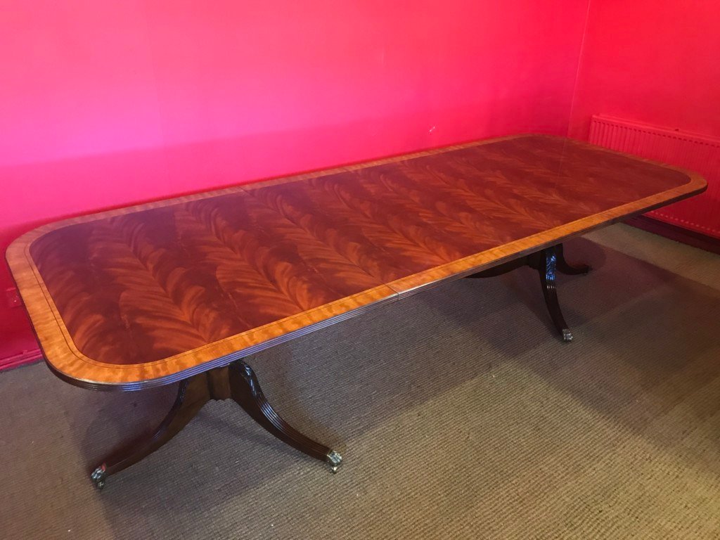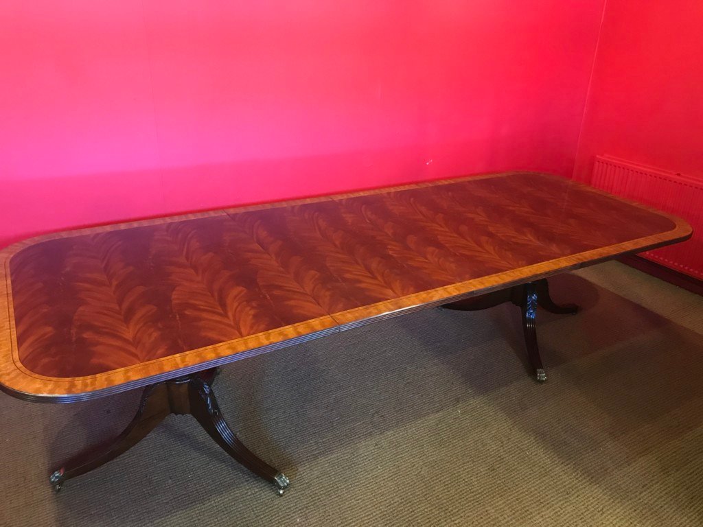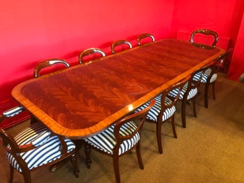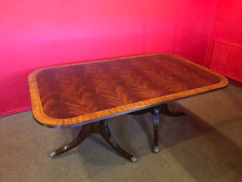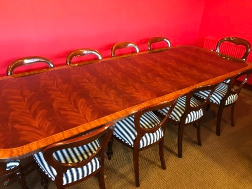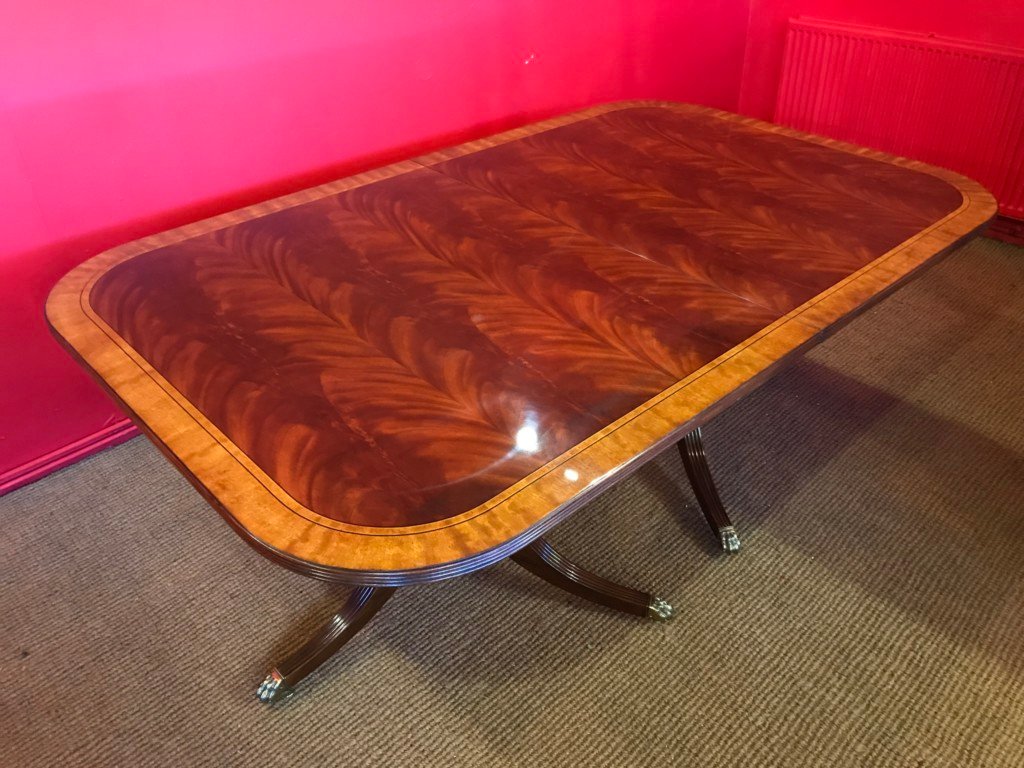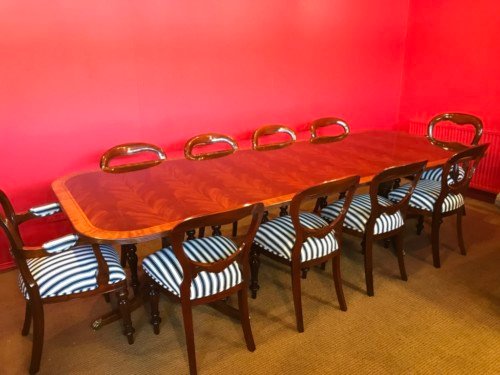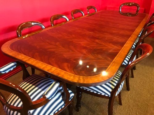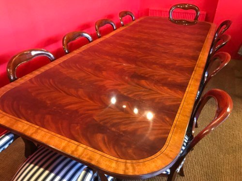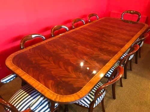 Magnificent Designer Grand Regency style Grand Flame mahogany & Satin wood inlay dining table.