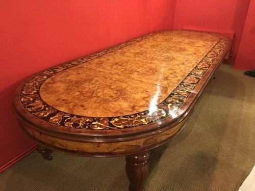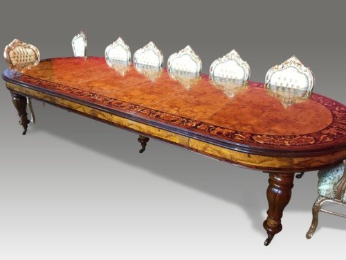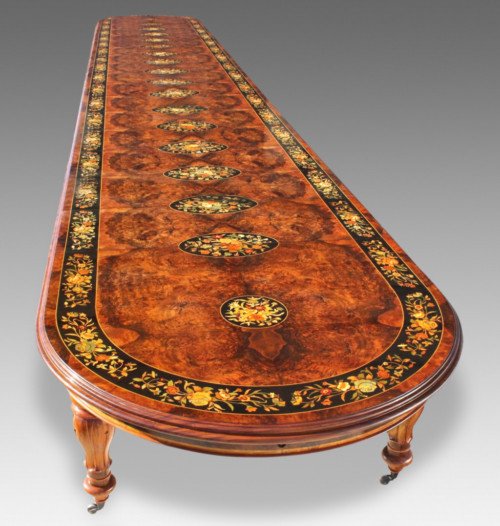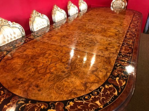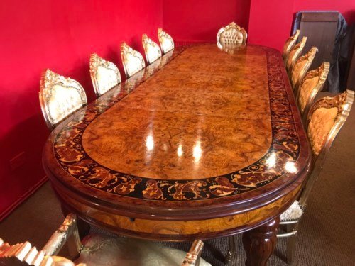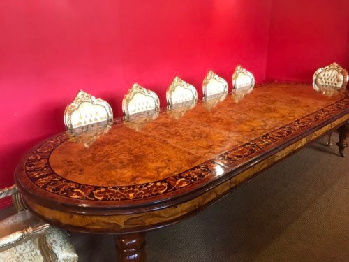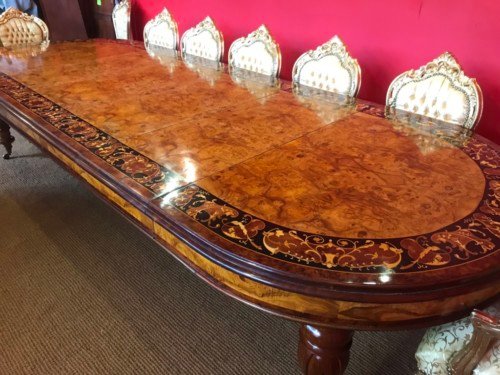 A simply magnificent gorgeous Grand 12.5ft Burr Walnut Marquetry dining table.