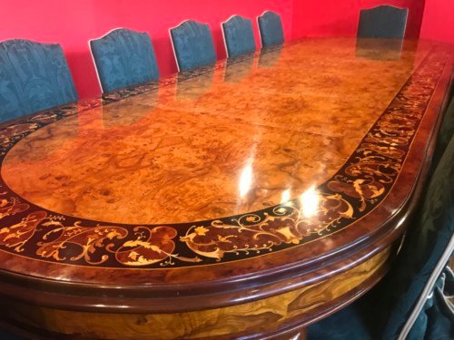 This is certainly one of the most attractive Grand dining tables we have ever come accross or had the pleasure to work on & come across in over 20 years of working in the high end furniture business.