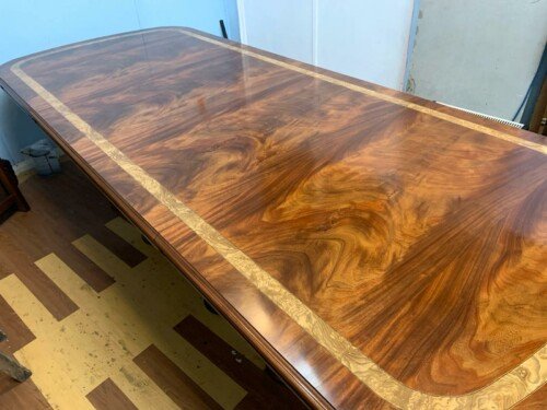 Hand professional French polishing is still considered as the very finest finish that can be applied to furniture and in particular to table tops. Obviously it’s still so unique in the look and feel giving any item and table top that special deep lustrous shine & gleam that only Modern table top French Polishes can truly achieve, that are also now quite hard wearing and durable as well as being heat resistant to certain degree.