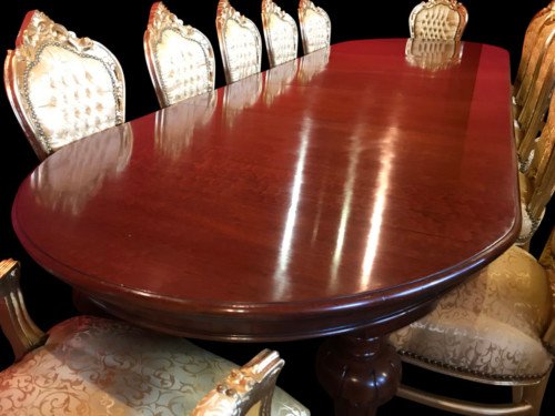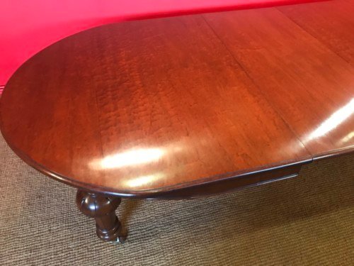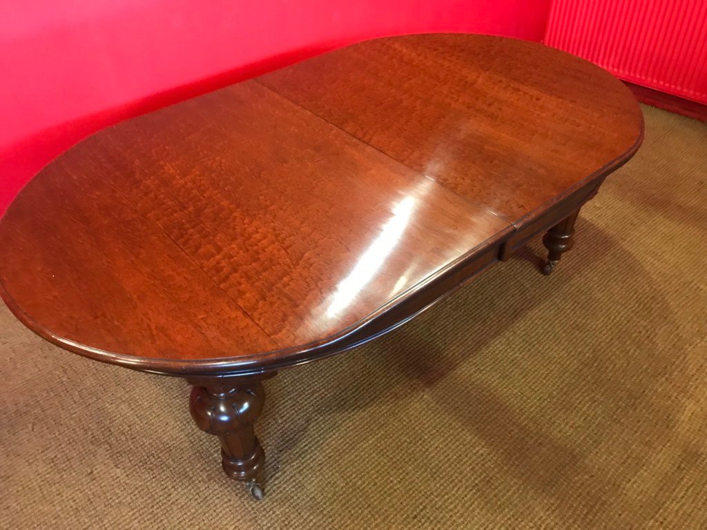 It’s now in a traditional natural warm mahogany colour to show off the beautiful movement in the Cuban mahogany & will have once again that deep lustrous shine & gleam to it that still only hand French polishing can achieve using the very finest modern table top French Polishes & materials to obtain the stunning finish we desire, which also now give quite a hard & heat resistant finish compared to the old French Polishes of the past.