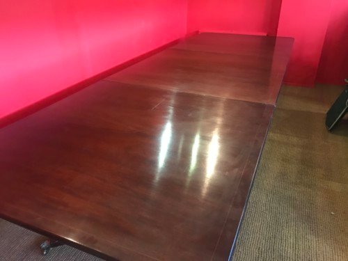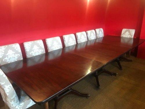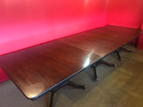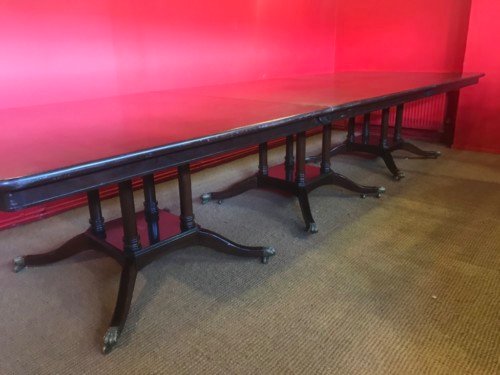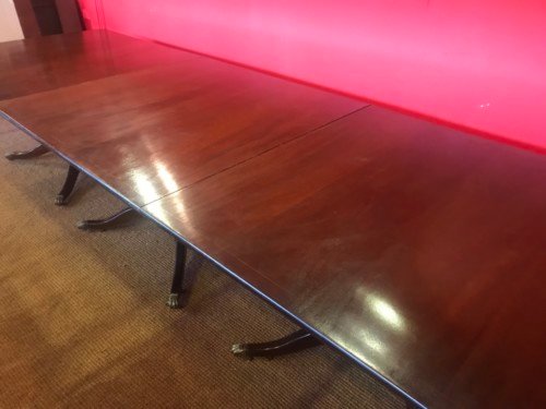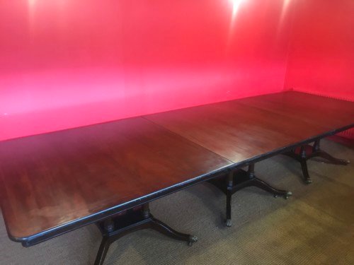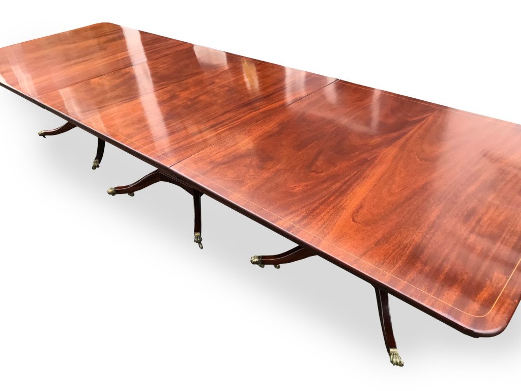 Magnificent triple pedestal 13ft Irish Grand Regency style designer Cuban mahogany dining table
