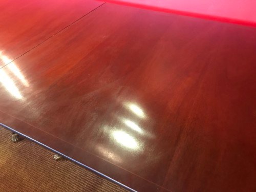 It will be French polished in the traditional natural warm mahogany colour to show off the beautiful patterned movement in the eye catching top & will have once again that deep lustrous shine & gleam to it that still only hand French polishing can achieve using the very finest modern table top French Polishes & materials to obtain the stunning finish we desire,