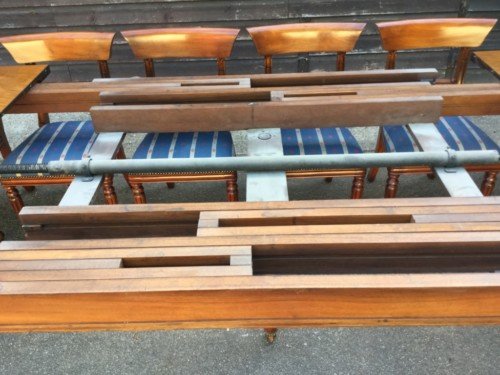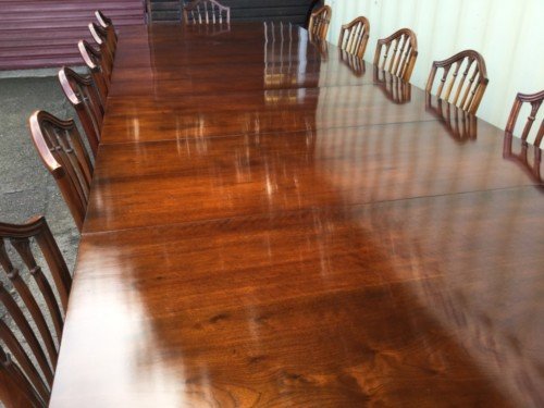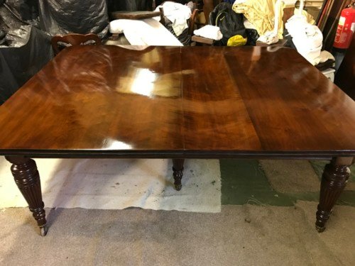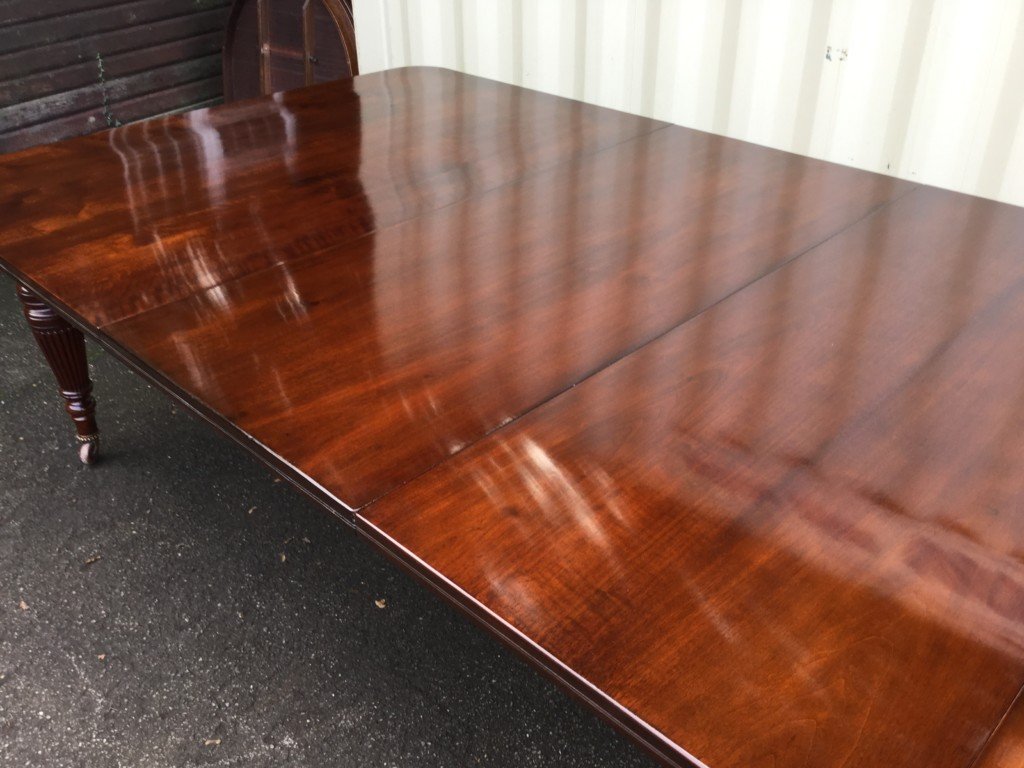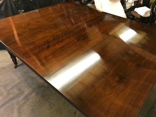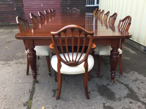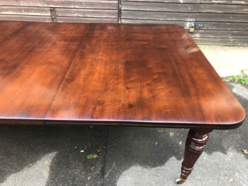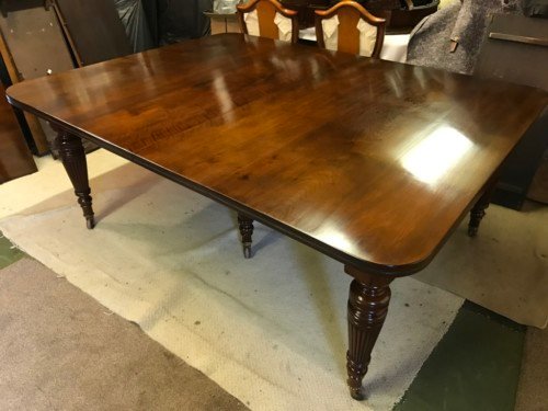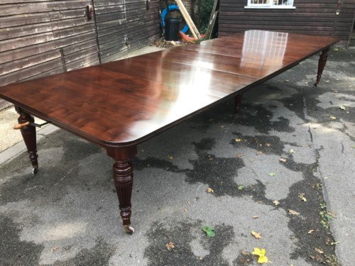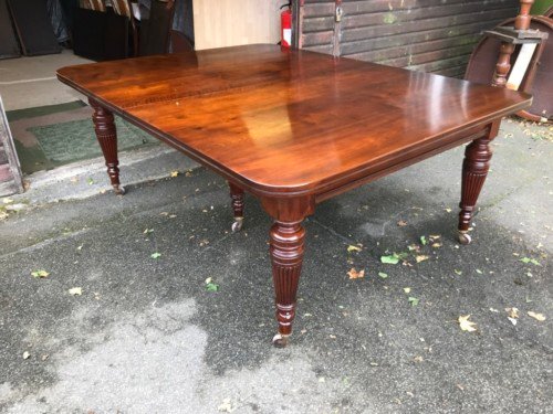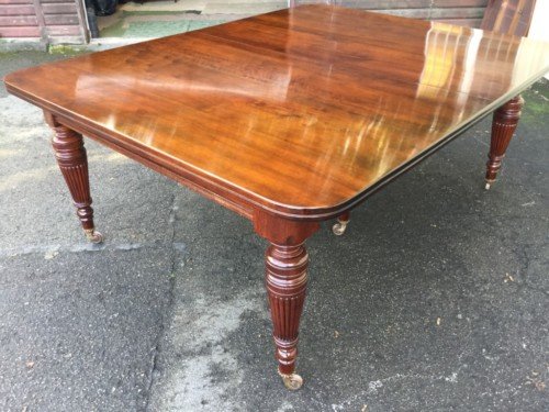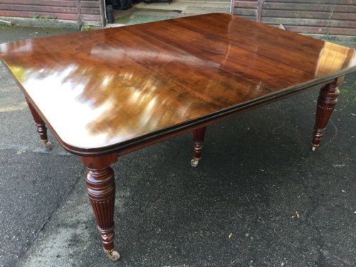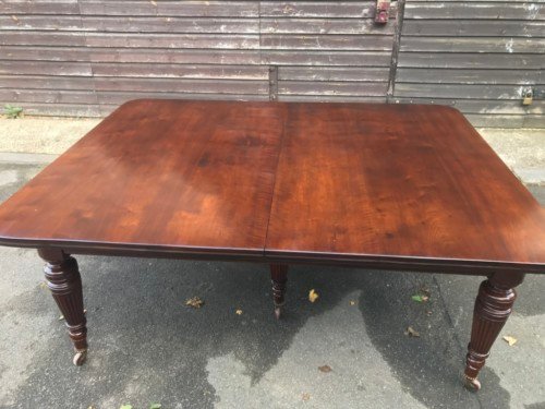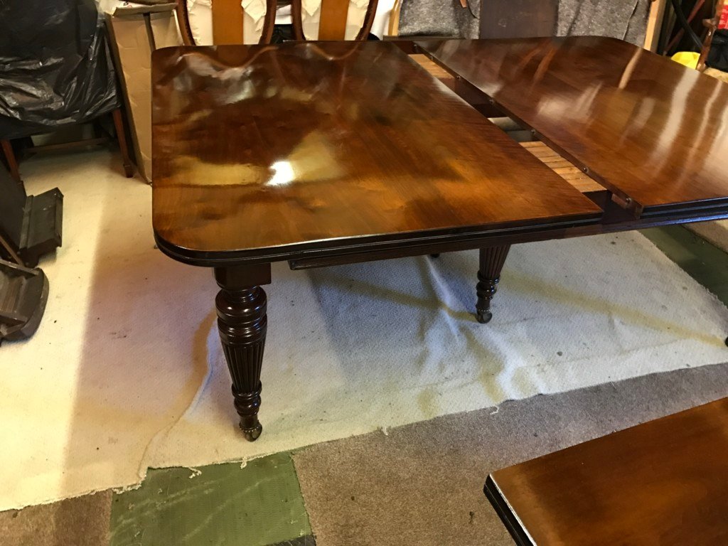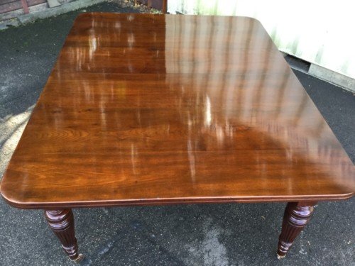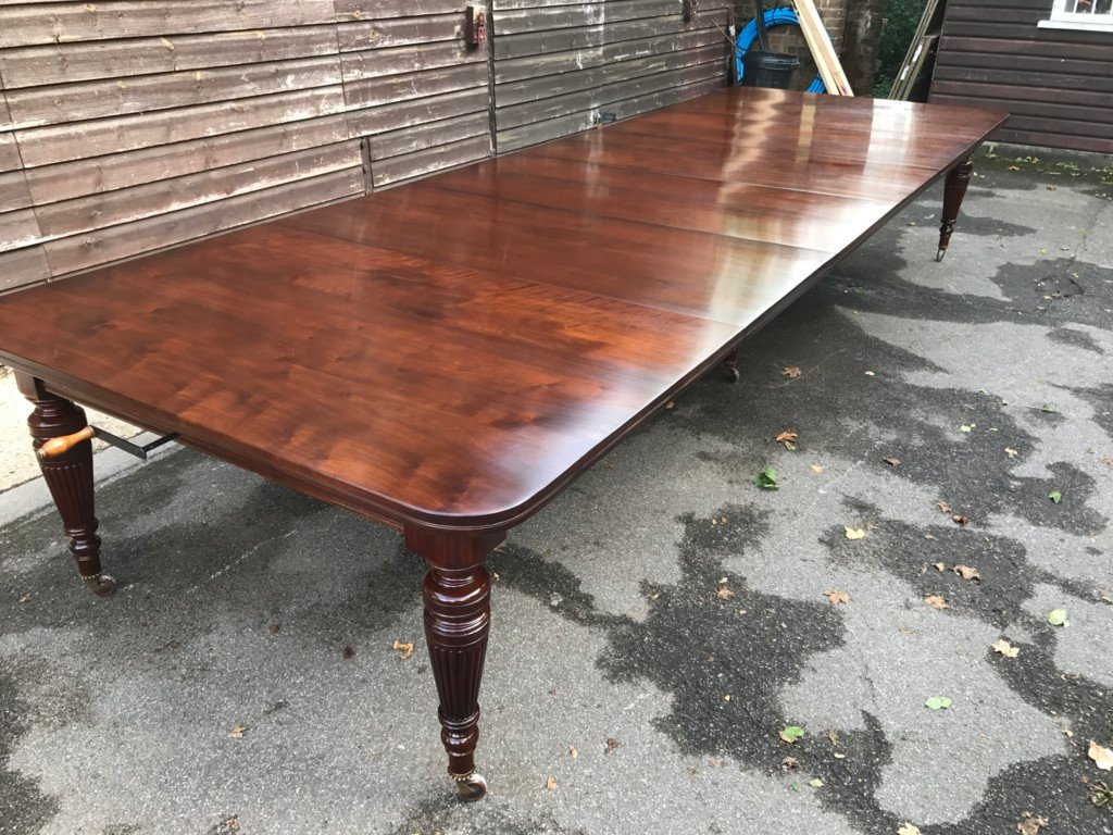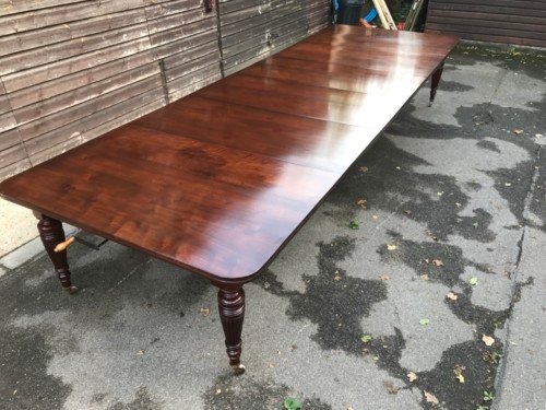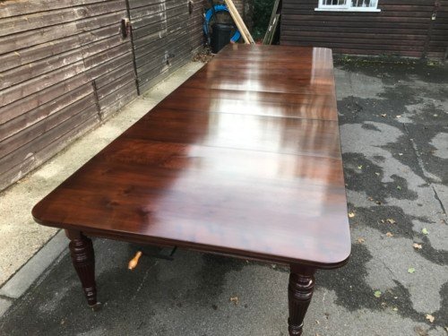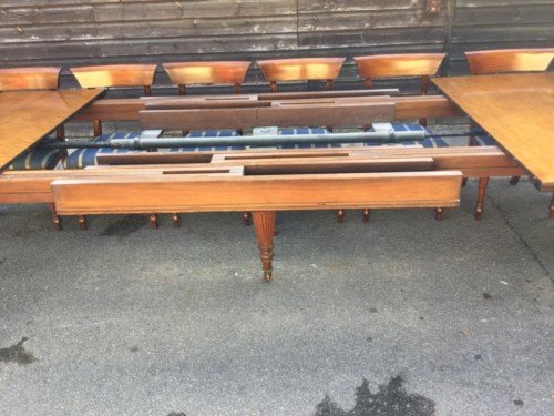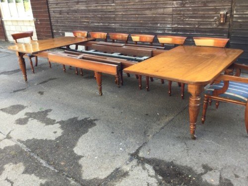The Victorians introduced Walnut dining tables that extended by means of a cranking action and a mechanism of interlocking bearers that did away with the need for excessive numbers of legs:
