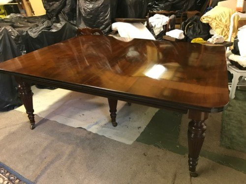 Where Walnut was favoured for the fashionable dining room, although dining tables were still generally in mahogany, with boldly fluted chunky legs.