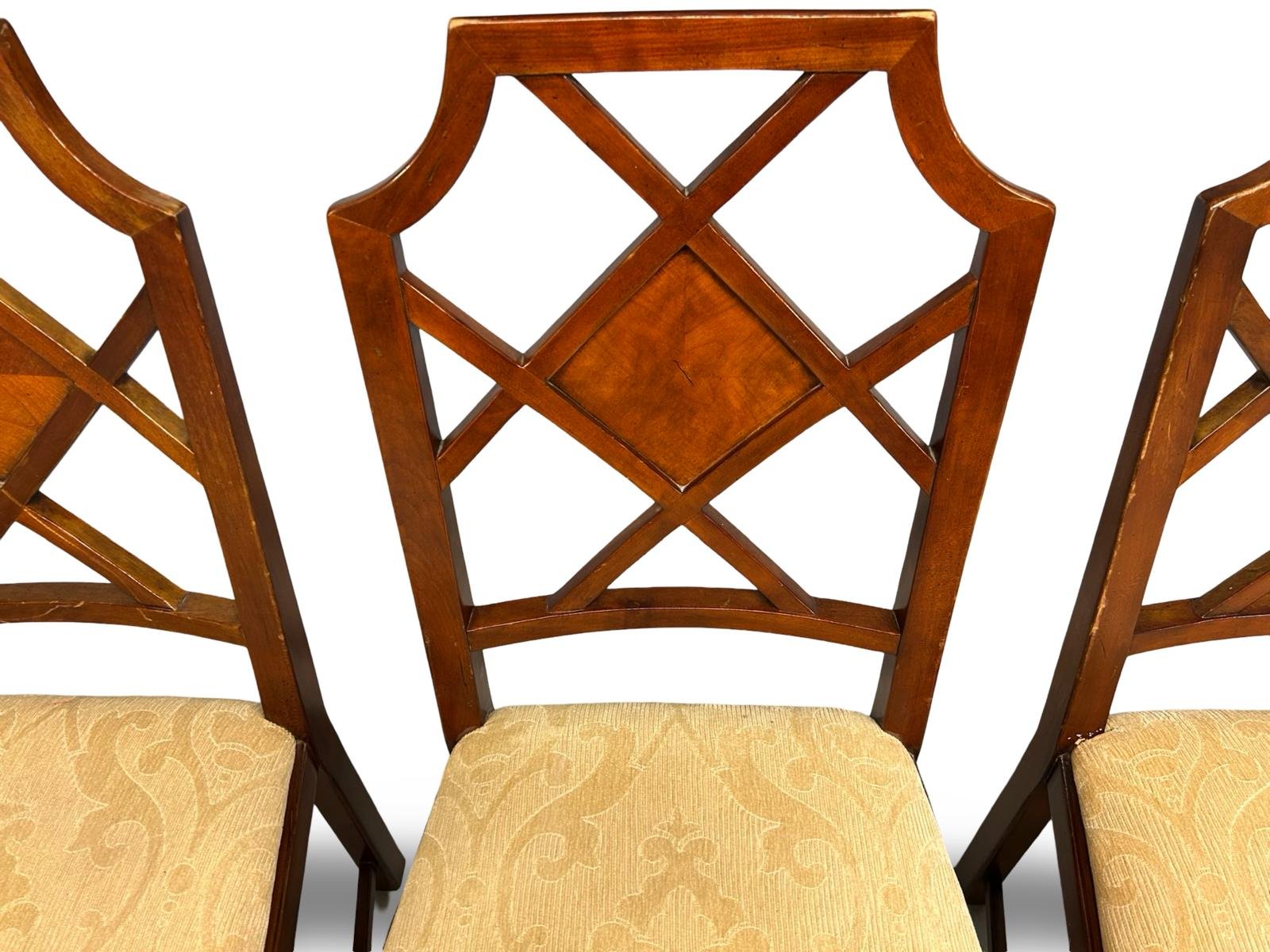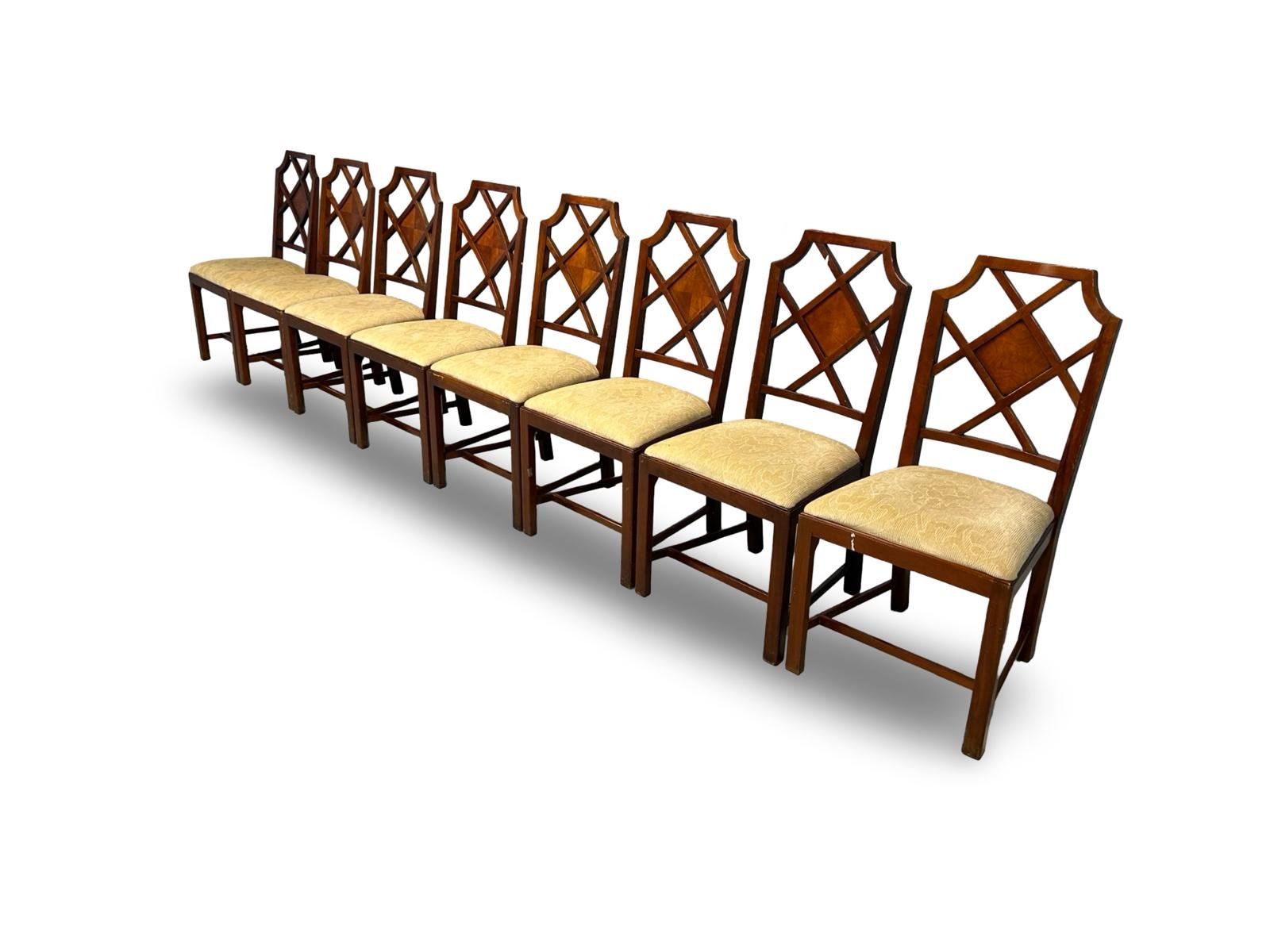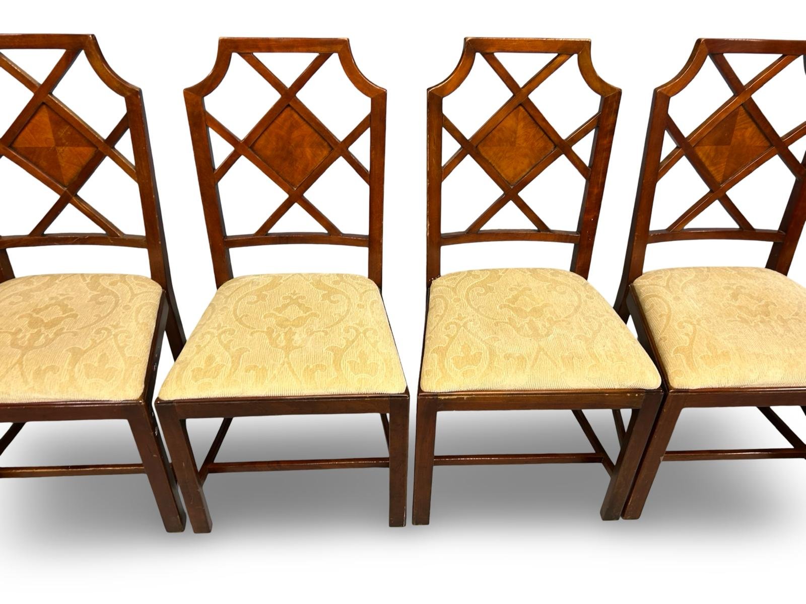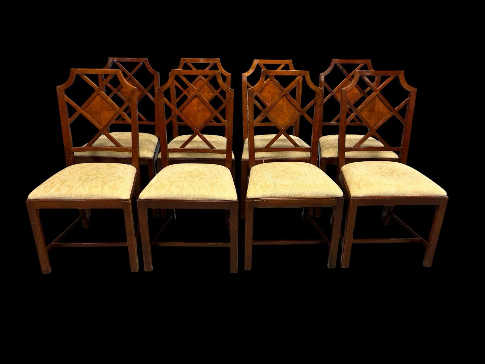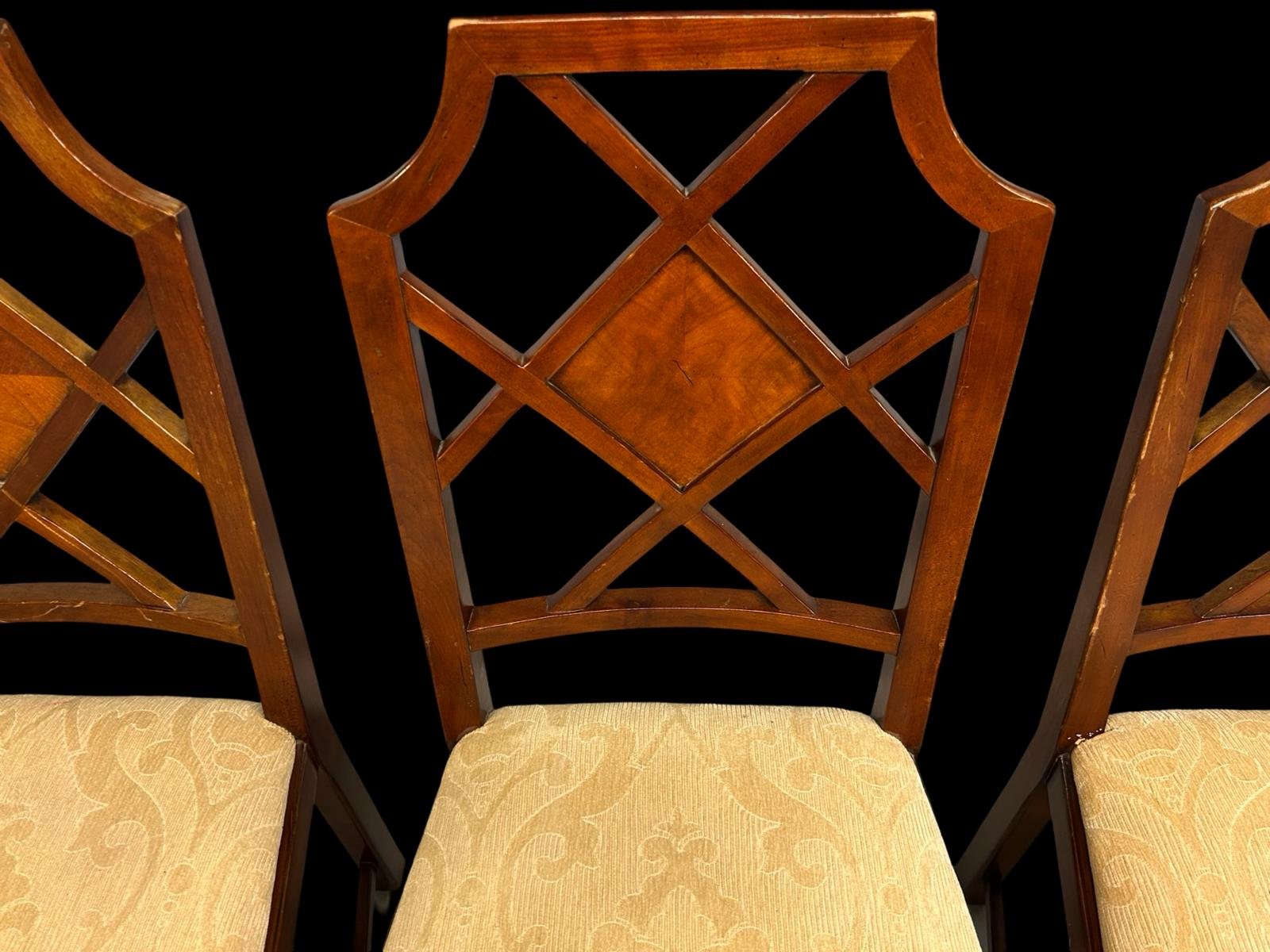 The accompanying dining chairs are included within the set. Please note: the chairs had not yet been refurbished or French polished at the time of photography. We are able to complete the chairs to match the table to the same exceptional standard upon request.
