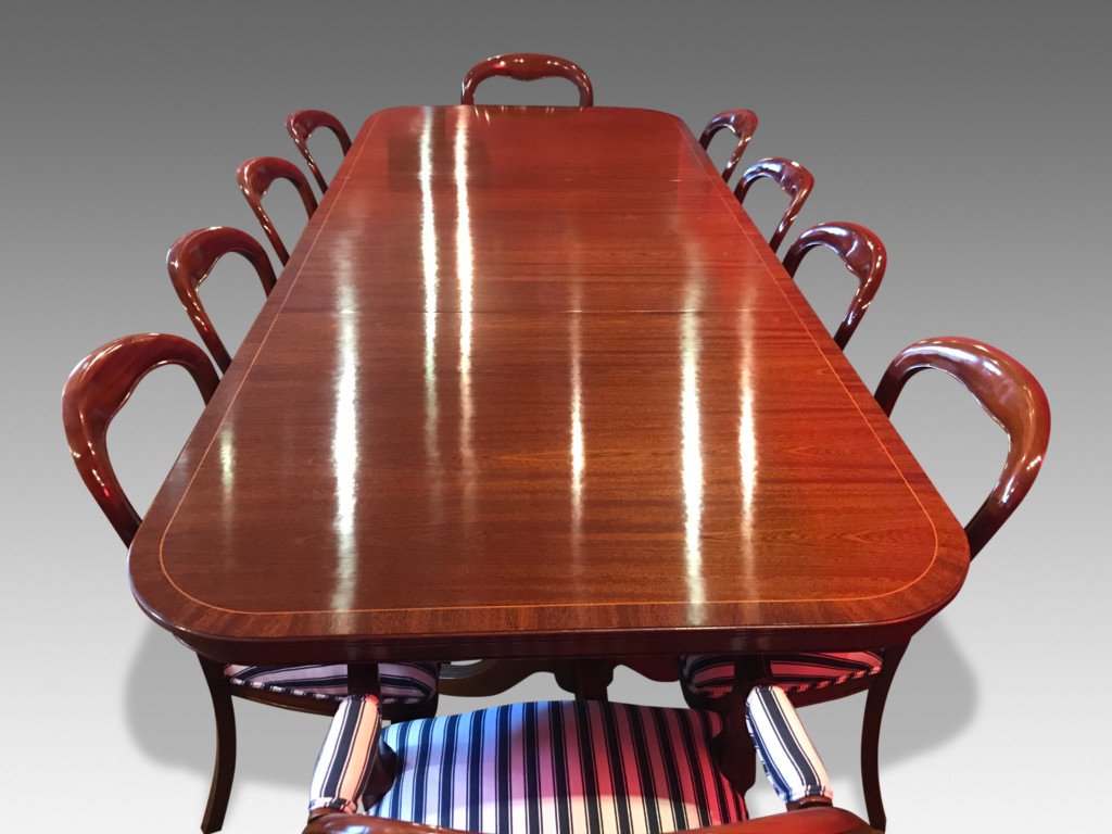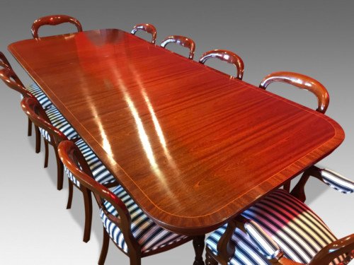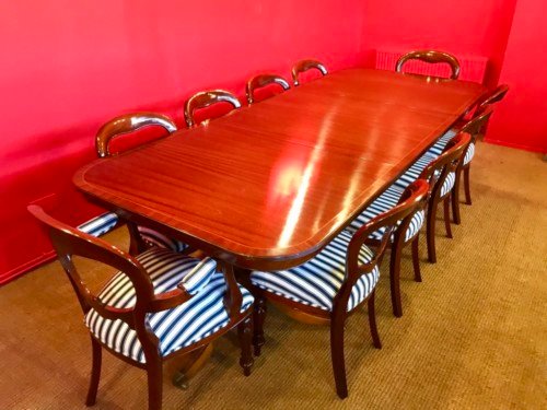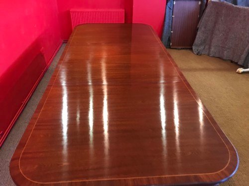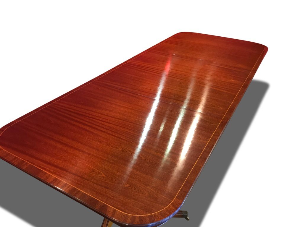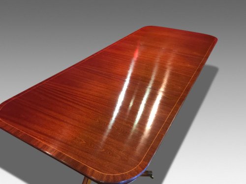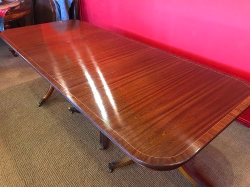 A simply gorgeous Opulent George III style triple pedestal Brazilian Mahogany grand dining table.