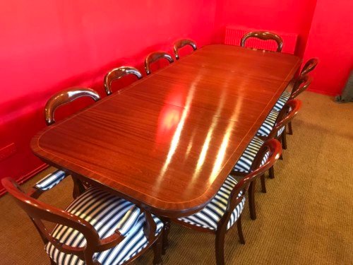 This very attractive table will very comfortably seat 10 to 12 people & would make an excellent new addition.