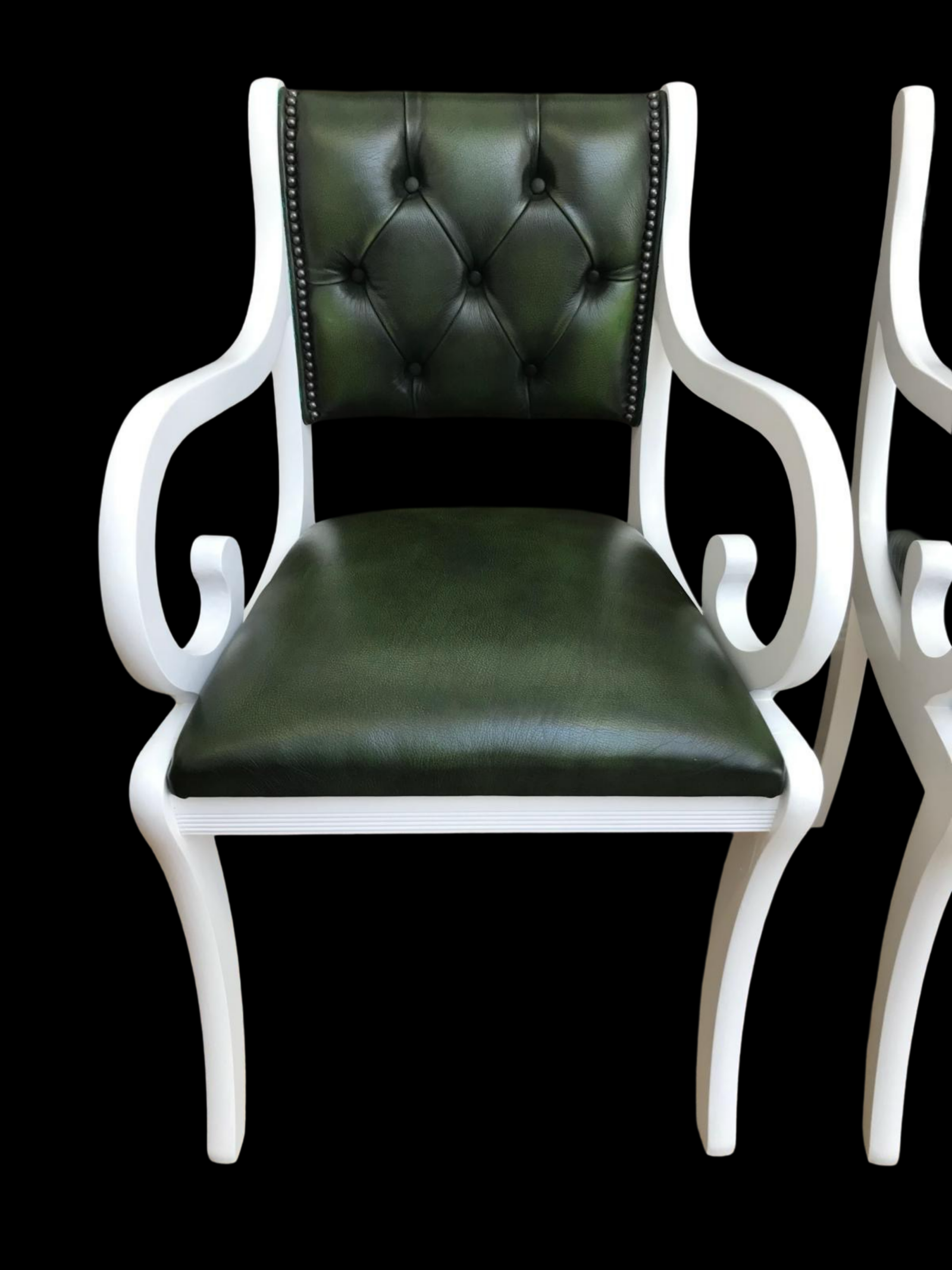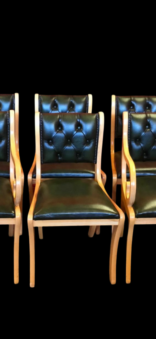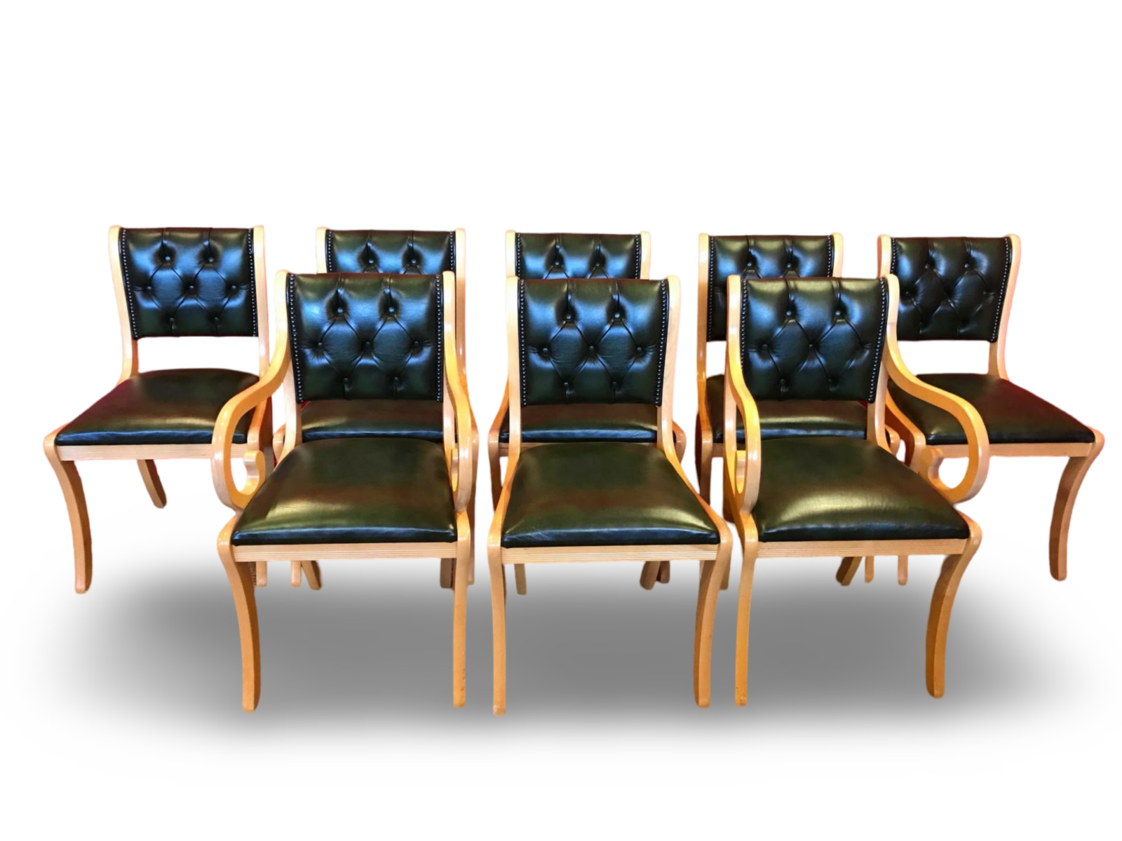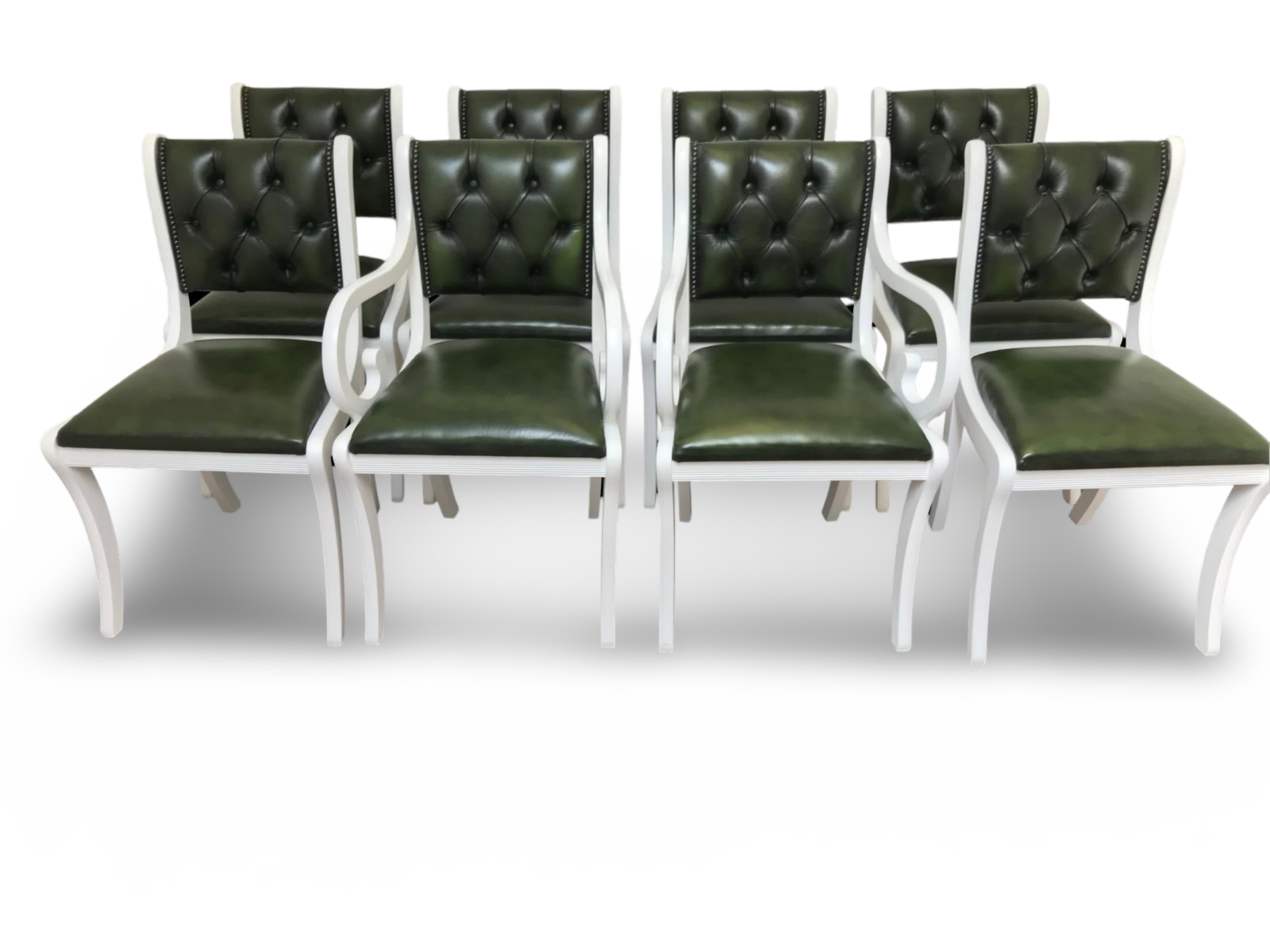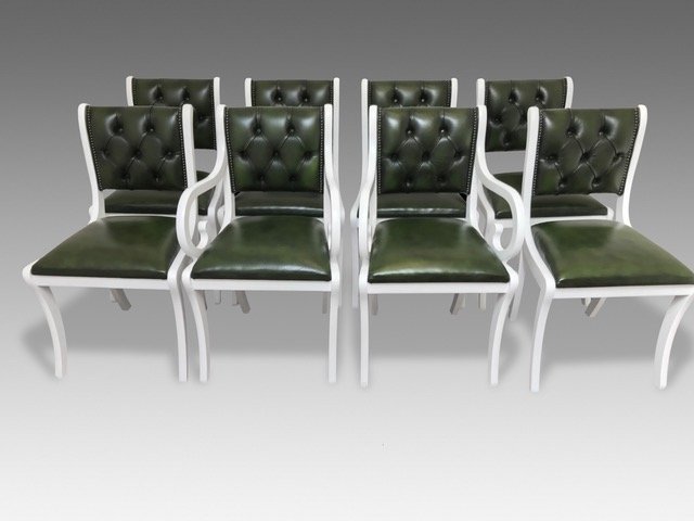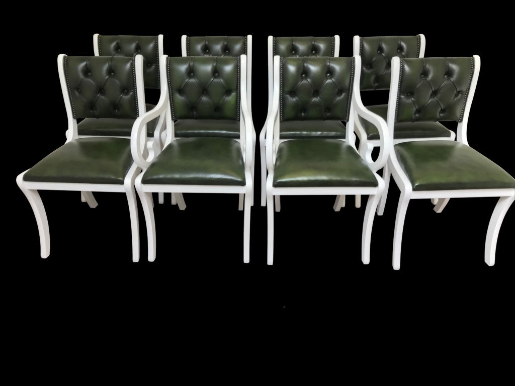 A Simply stunning set of 8 Beautiful Regency style real genuine leather hide traditional green colour dining chairs