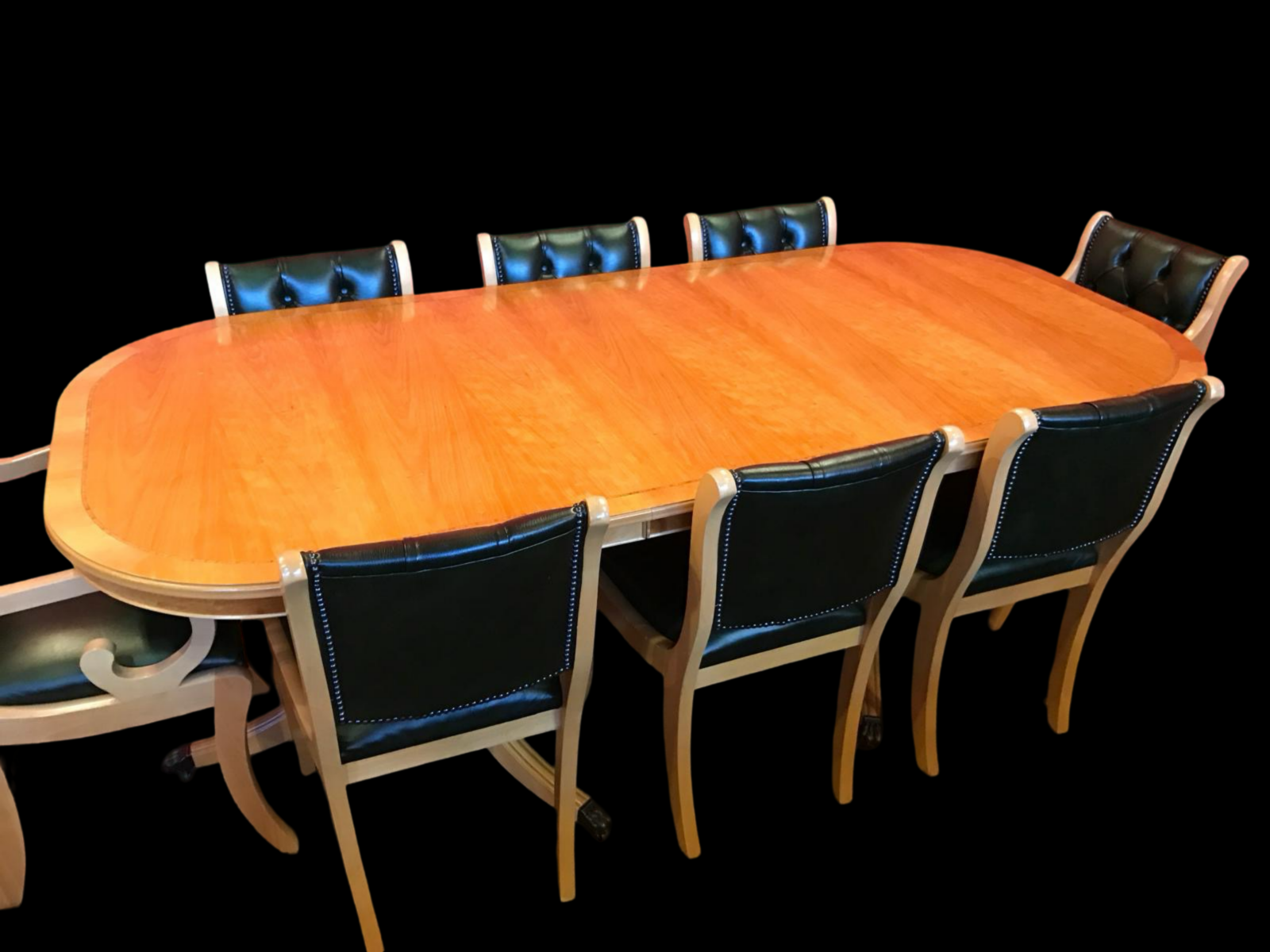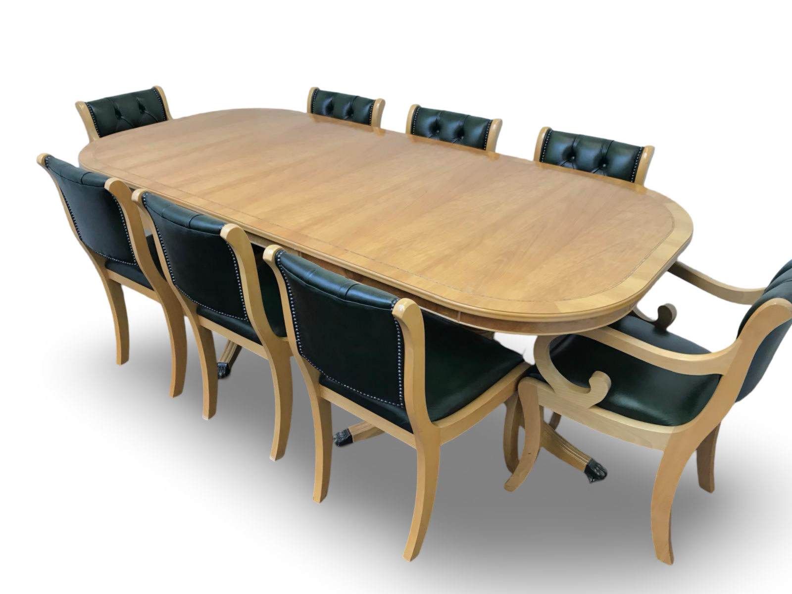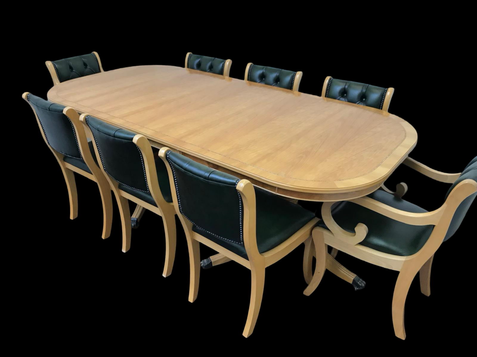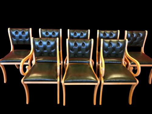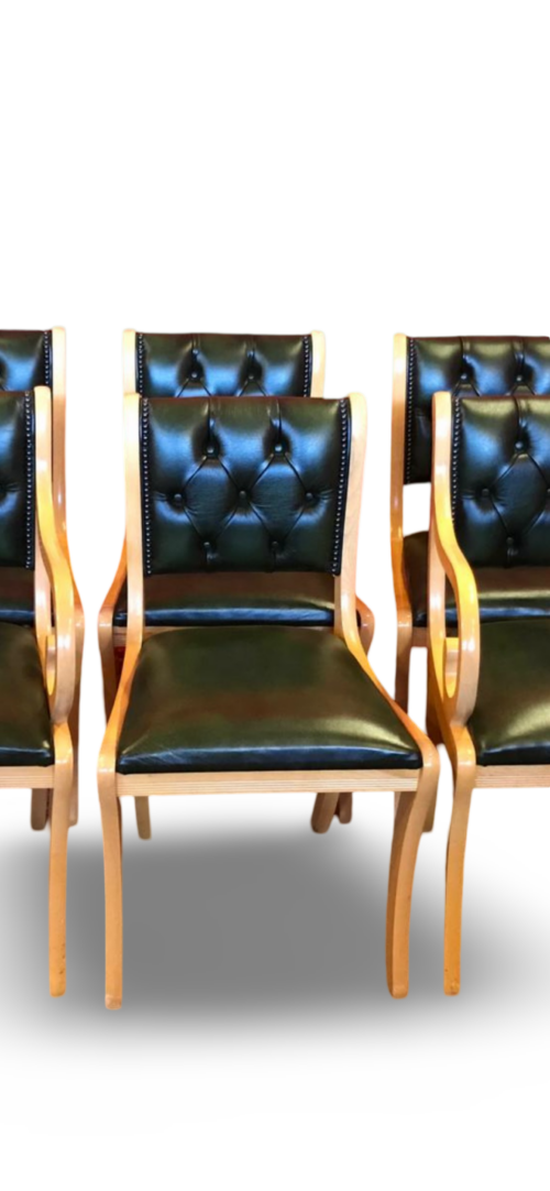 A Simply stunning set of 8 Beautiful Regency style real genuine leather hide traditional green colour dining chairs