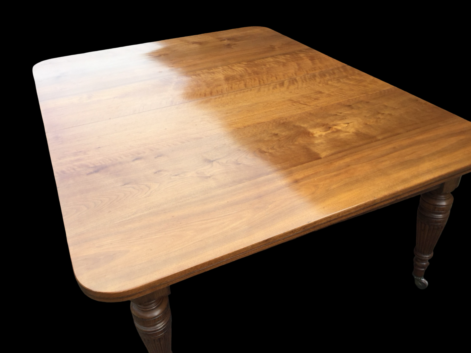 The table will be professionally hand French polished by our expert team — polishing works alone valued in excess of £1,000–£1,500.