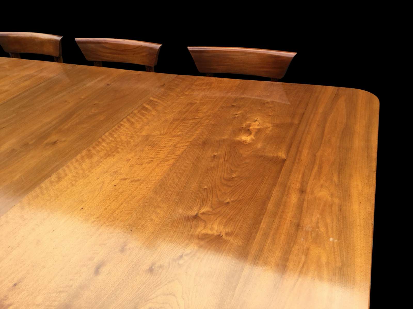 The tabletop displays rich natural walnut figuring with beautiful tonal warmth and depth.