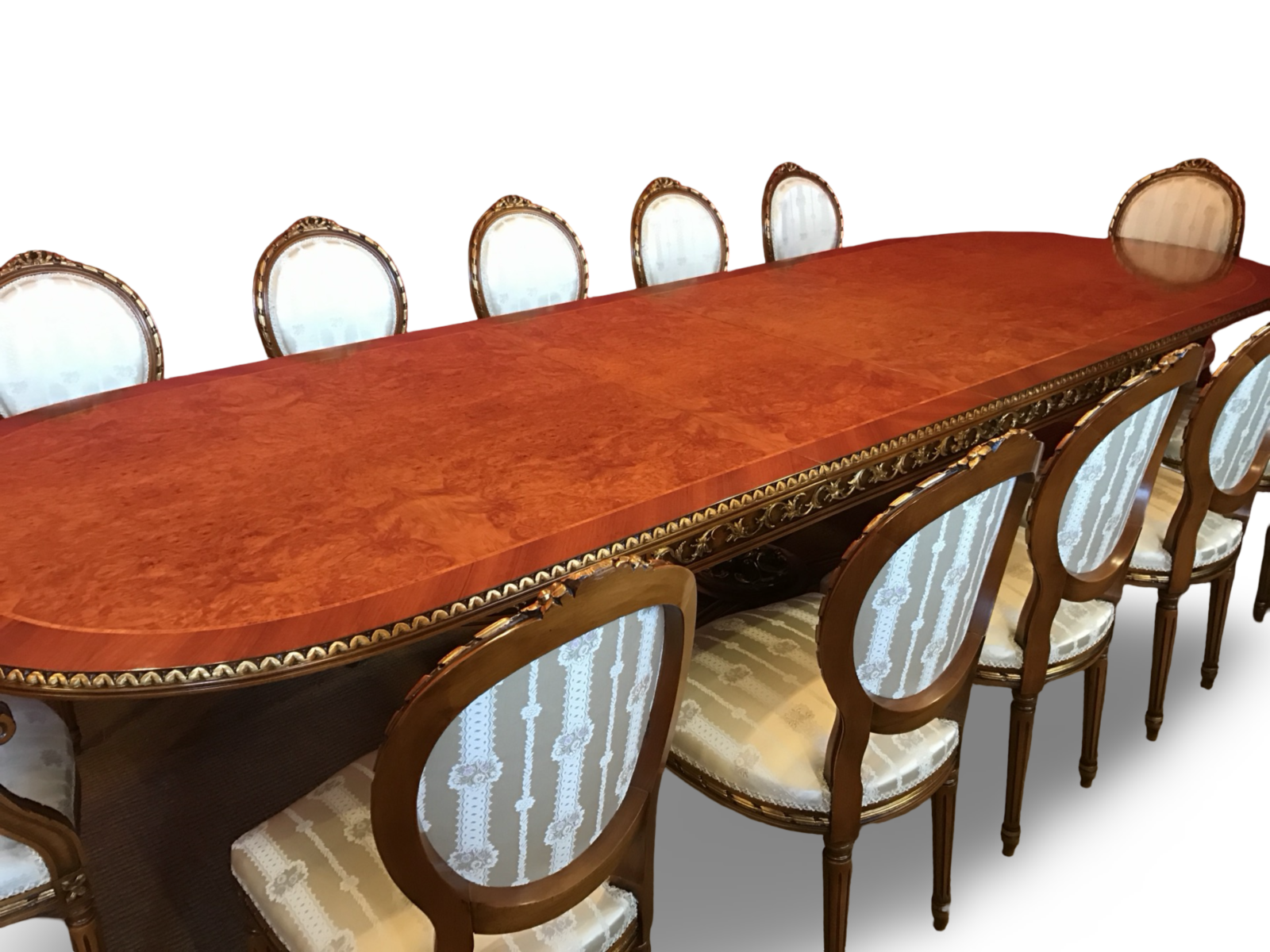 World-Class Bespoke Designer Grand Regency / Louis Style Burr Walnut Dining Table