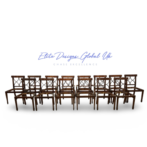 Producing a consistent set of 10 plus dining chairs to the same finish, colour tone, and upholstery quality requires great skill, time, and attention. That consistency and craftsmanship add to the value compared to smaller or mixed sets.