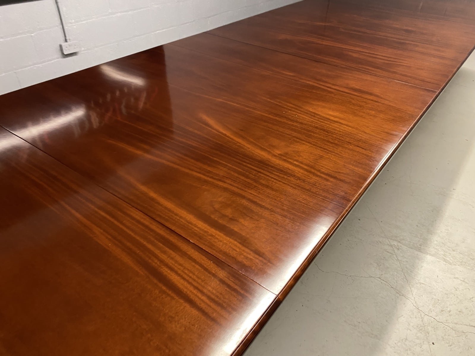 The table and chairs will be professionally French polished by our expert team in the traditional natural warm mahogany colour to show off the beautiful movement mahogany & will have once again that deep lustrous shine & gleam to it that still only hand French polishing can achieve using the very finest modern table top French Polishes & materials to obtain the stunning finish we desire, which also now give quite a hard & heat resistant finish compared to the old French Polishes of the past.