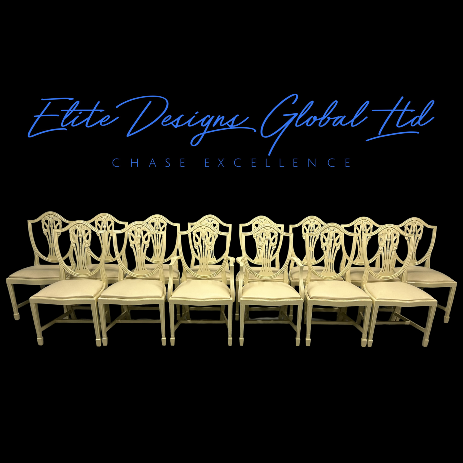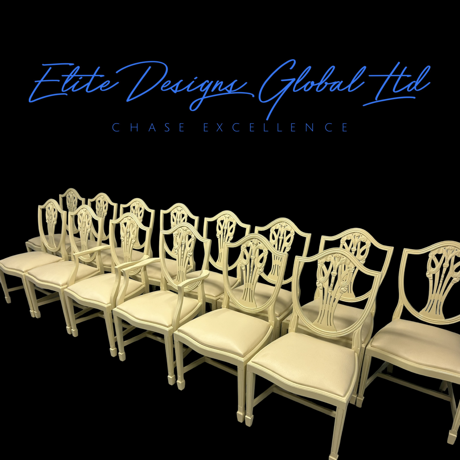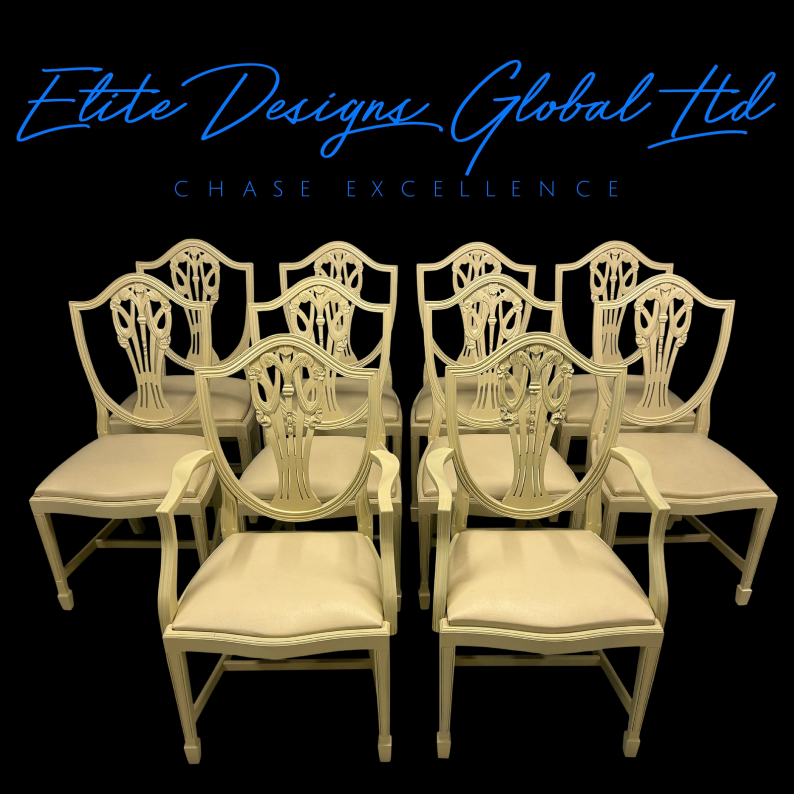 A truly stunning collection of Exclusive Elite “Prince of Wales” style dining chairs, finished in the timeless and elegant Farrow & Ball – Farrow’s Cream.