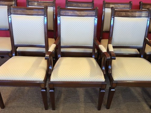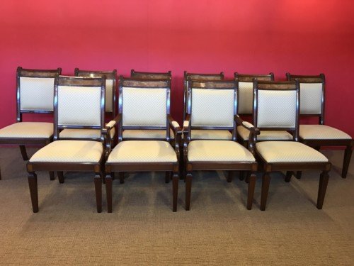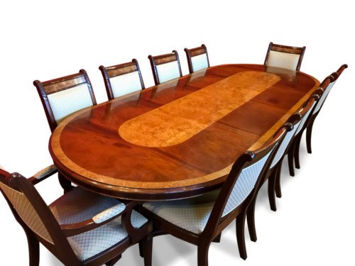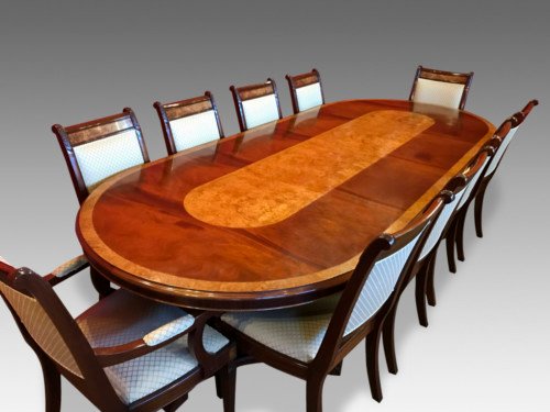 A simply gorgeous Designer Grand Regency style Burr Ash & Mahogany dining table set,