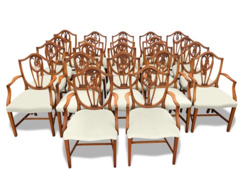 We have many fantastic chair sets that would match the table superbly that could when hand French Polished to match the colour of the Dining table are available to purchase with your choice of colour upholstery, although the upholstery already fitted is in very good condition.