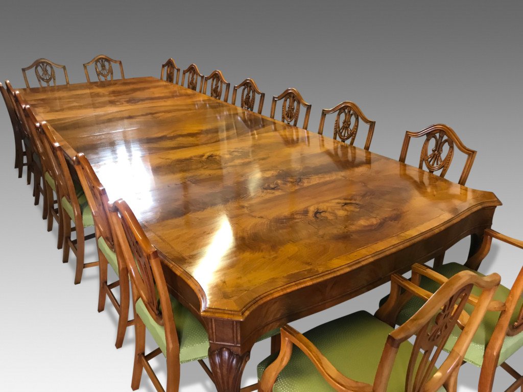 A simply huge and truly magnificent 14ft Antique Grand Victorian Burr Walnut dining table. 1831-1901