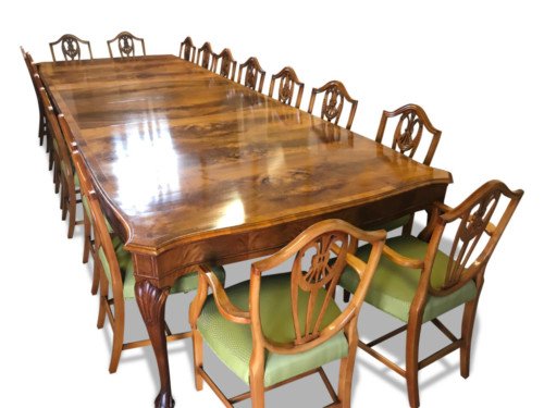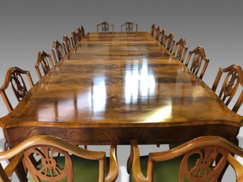Where Walnut was favoured for the fashionable dining room, although dining tables were still generally in mahogany, with fluted legs.