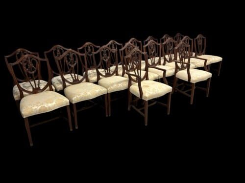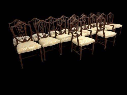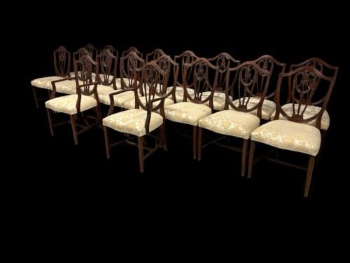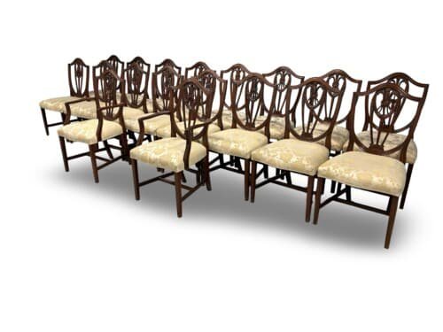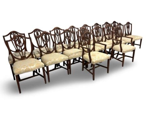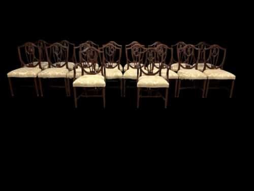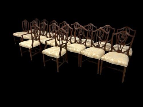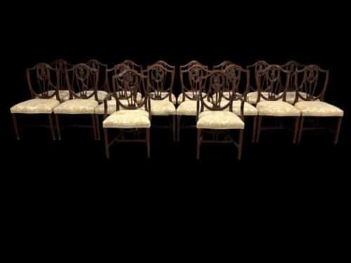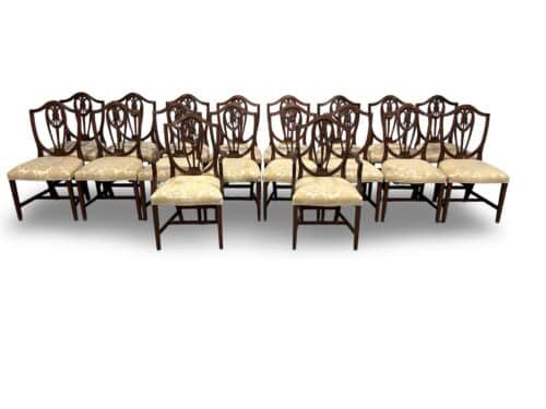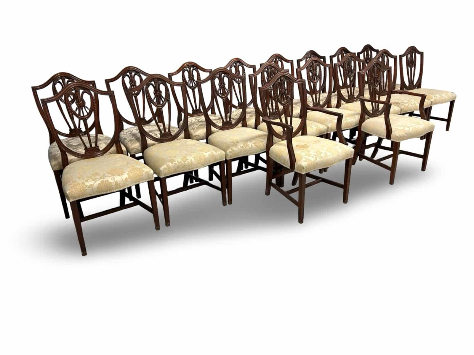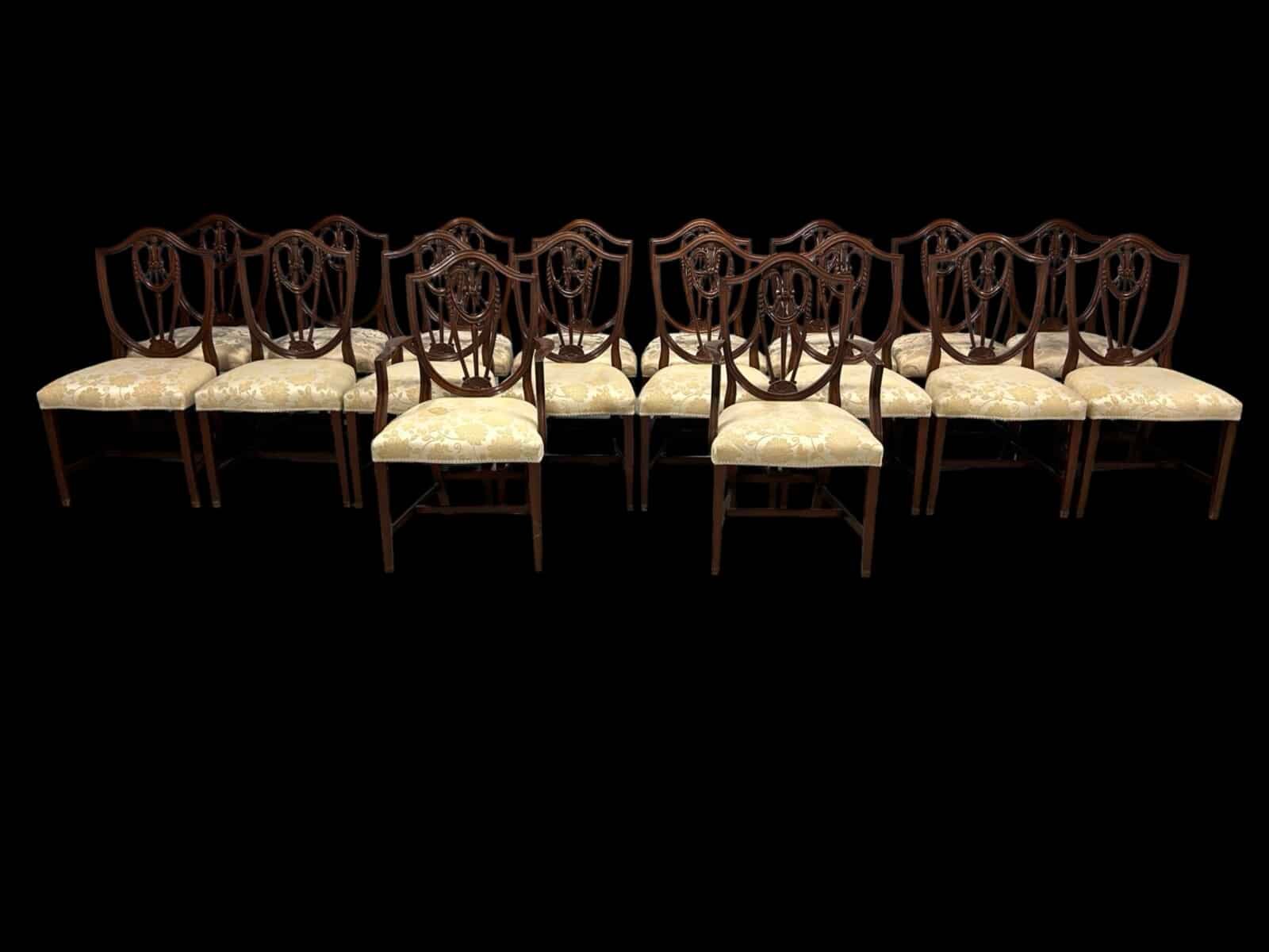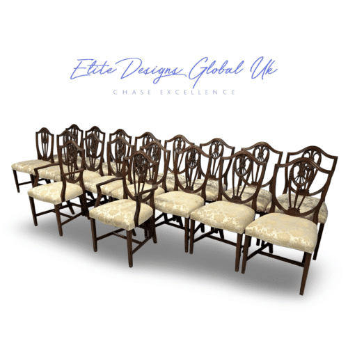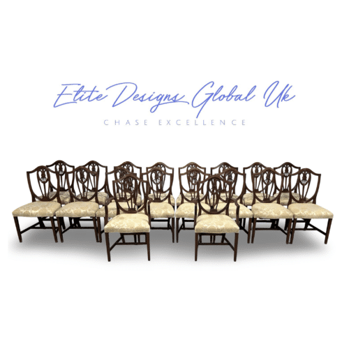 We are delighted to present a stunning rare set of 18 Elite Prince of Wales style dining chairs.