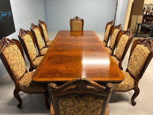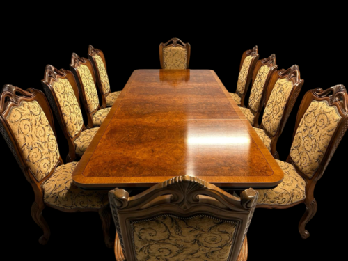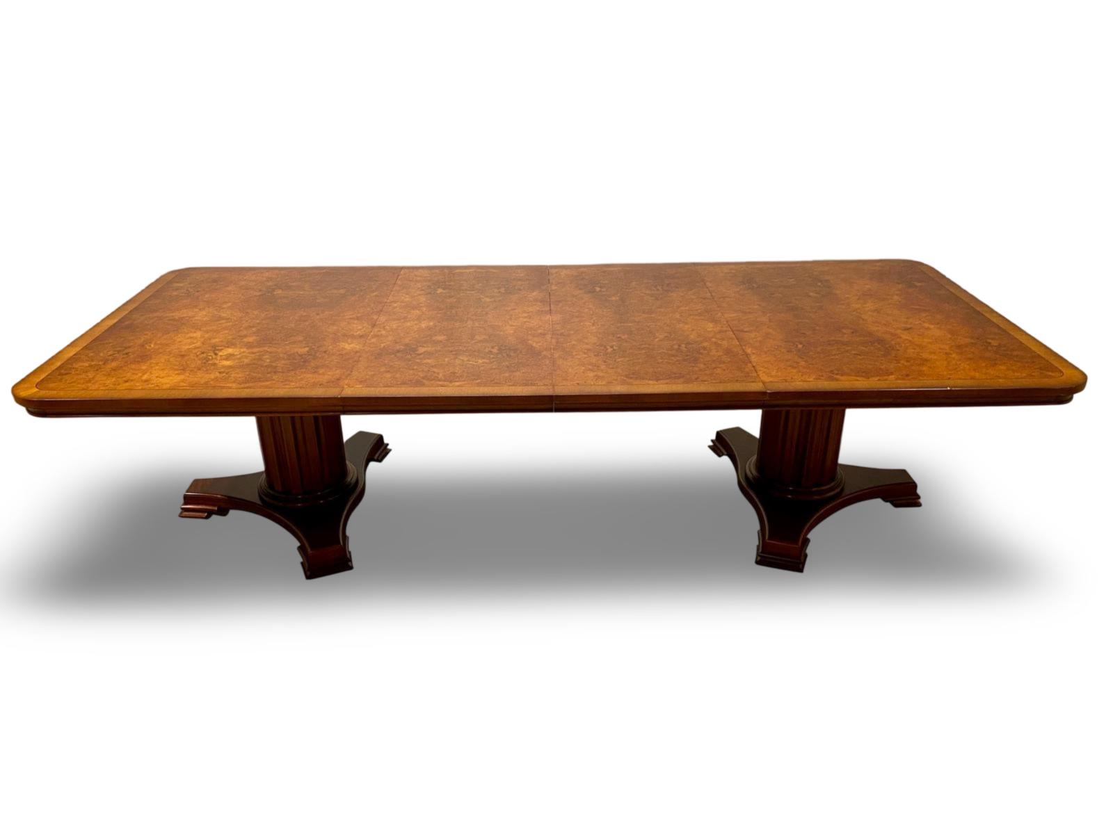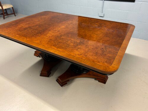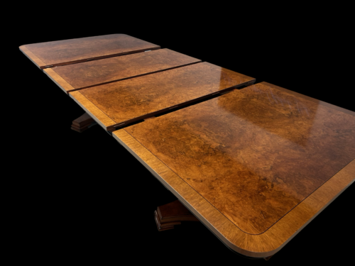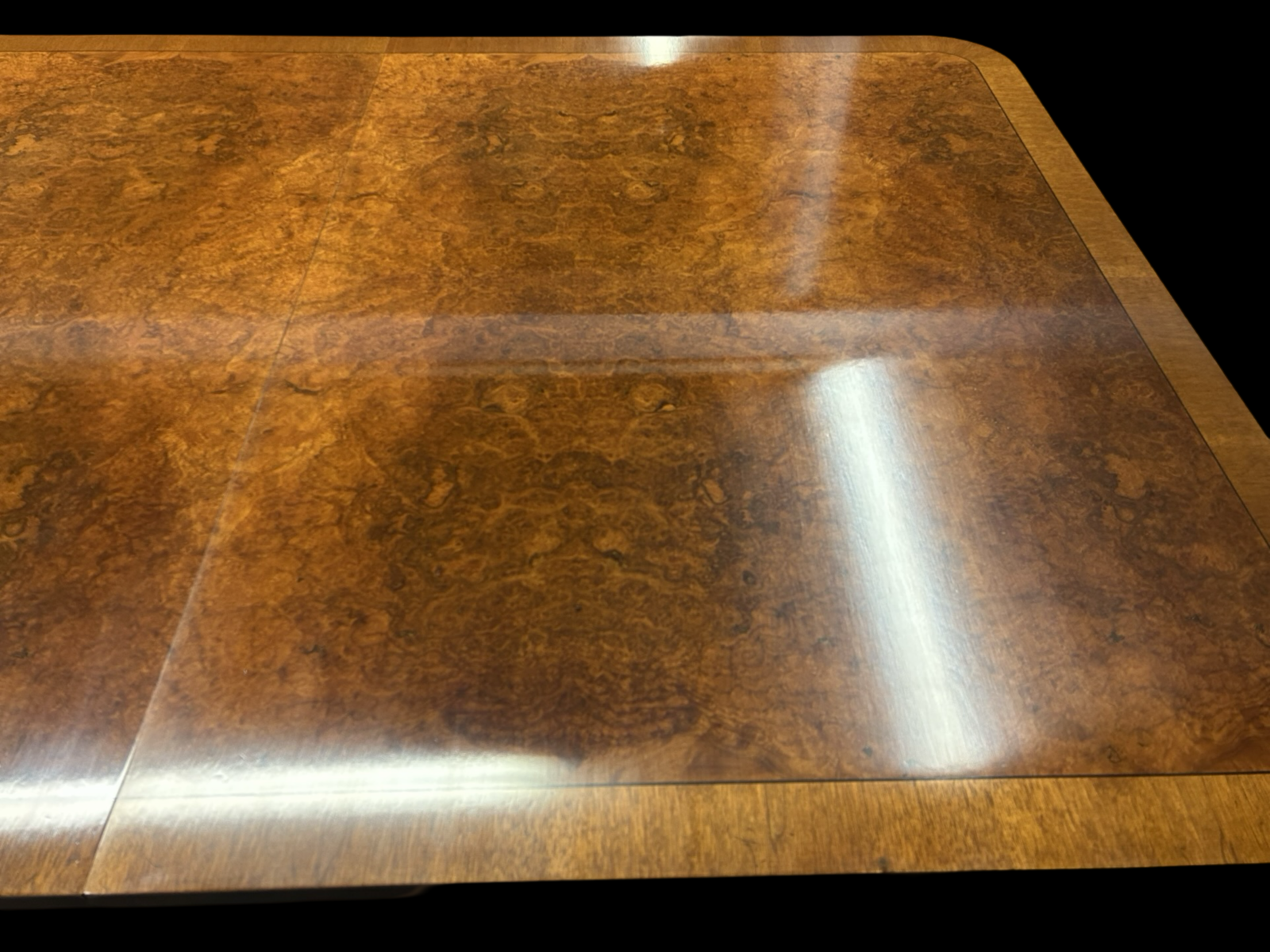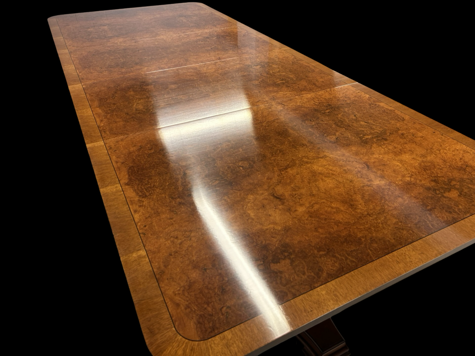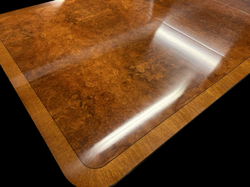 This magnificent table has been professionally hand-finished with the finest modern French polish, delivering a deep, lustrous shine that is both beautiful and durable.