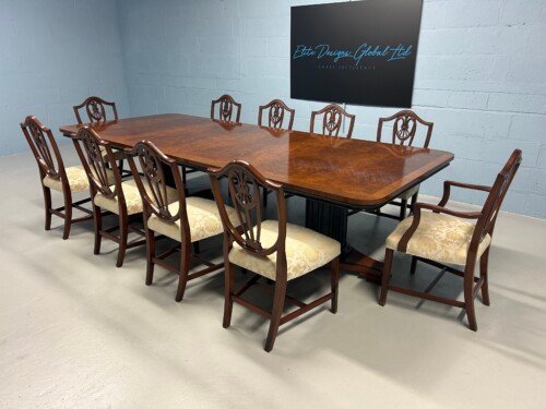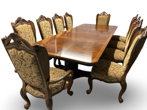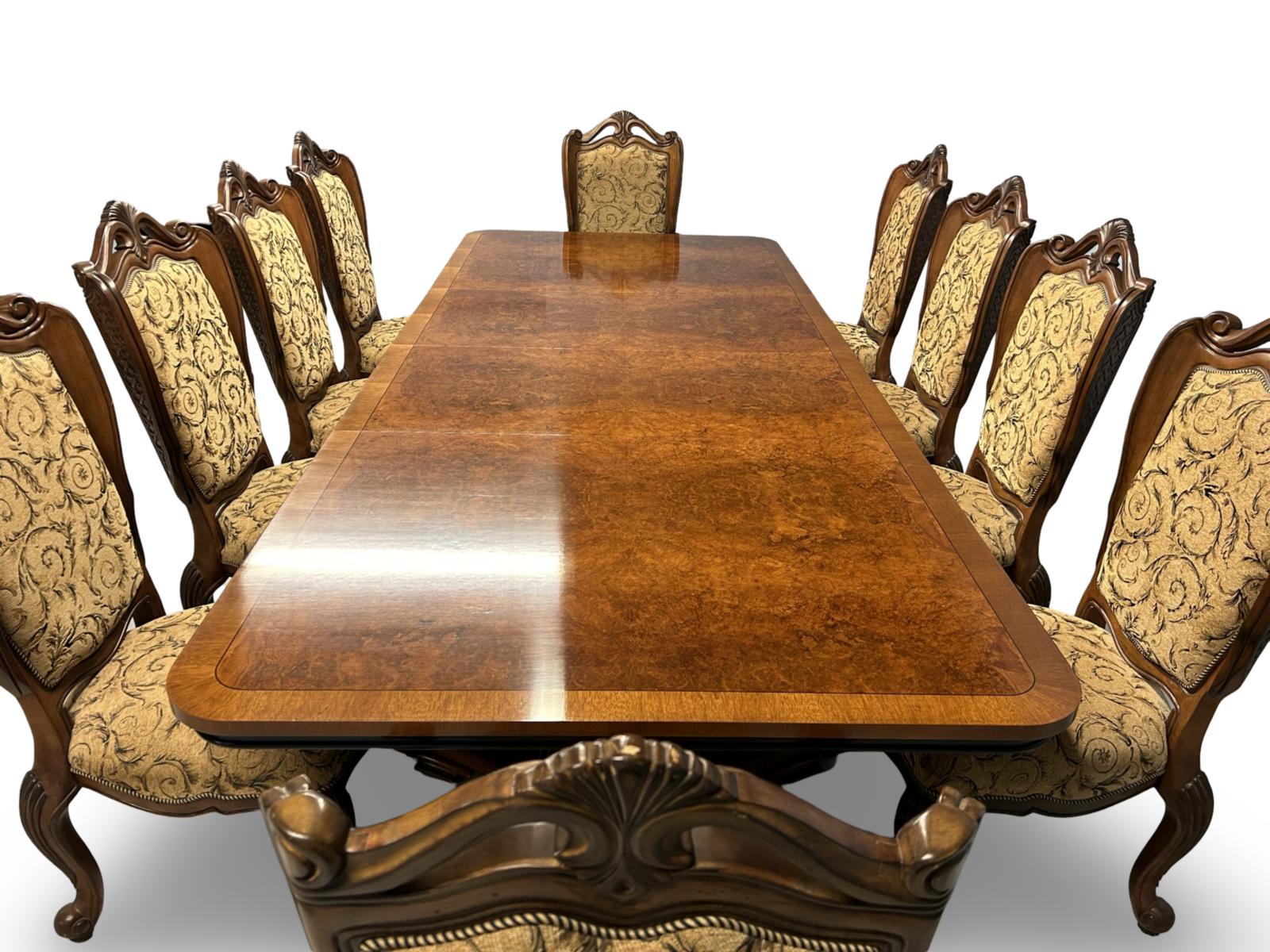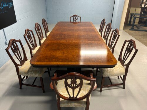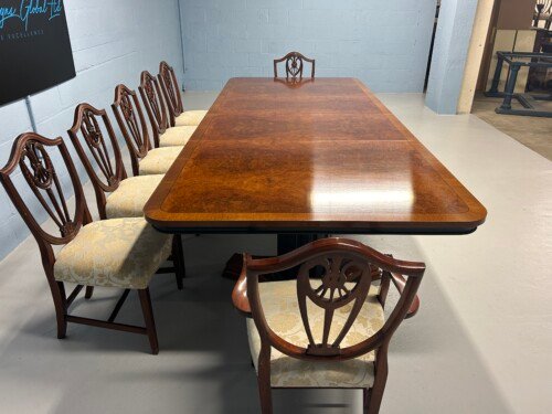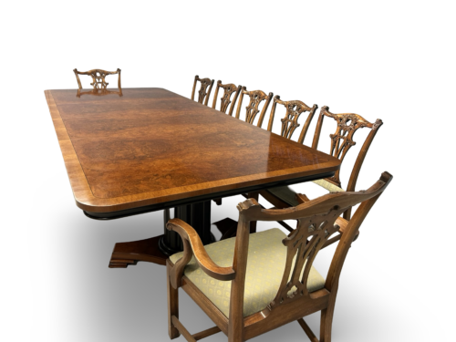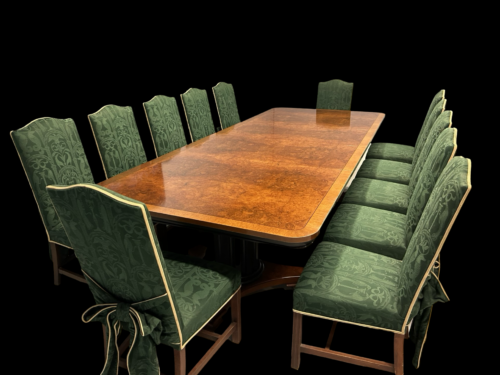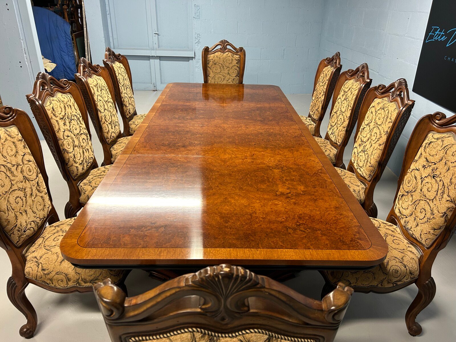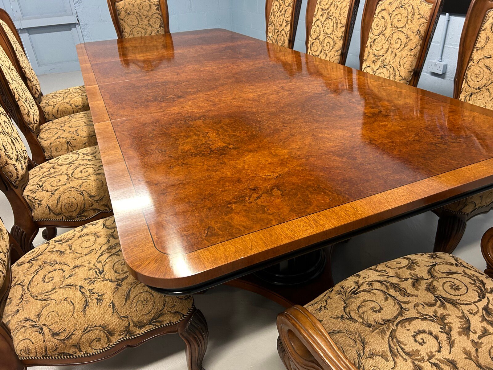This magnificent table has been professionally hand-finished with the finest modern French polish, delivering a deep, lustrous shine that is both beautiful and durable.