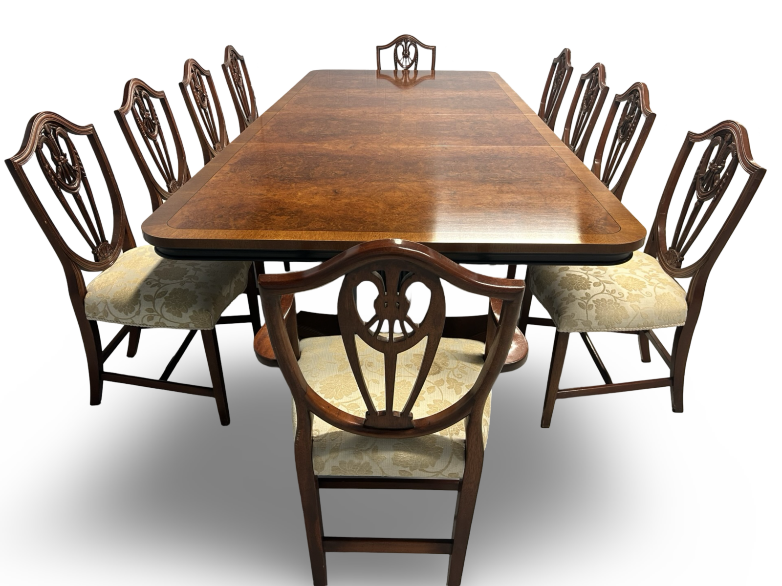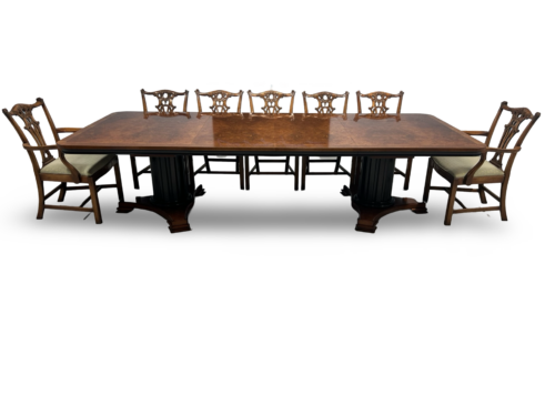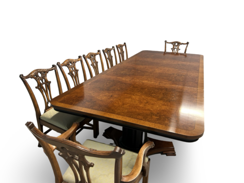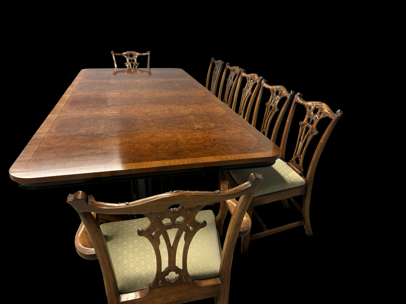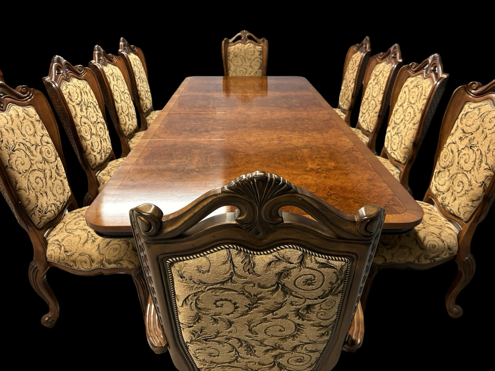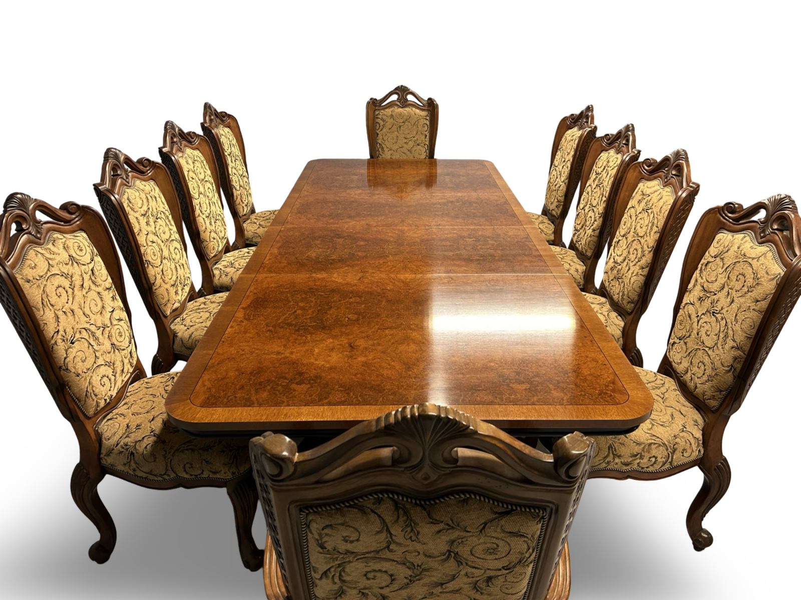 This magnificent table has been professionally hand-finished with the finest modern French polish, delivering a deep, lustrous shine that is both beautiful and durable.