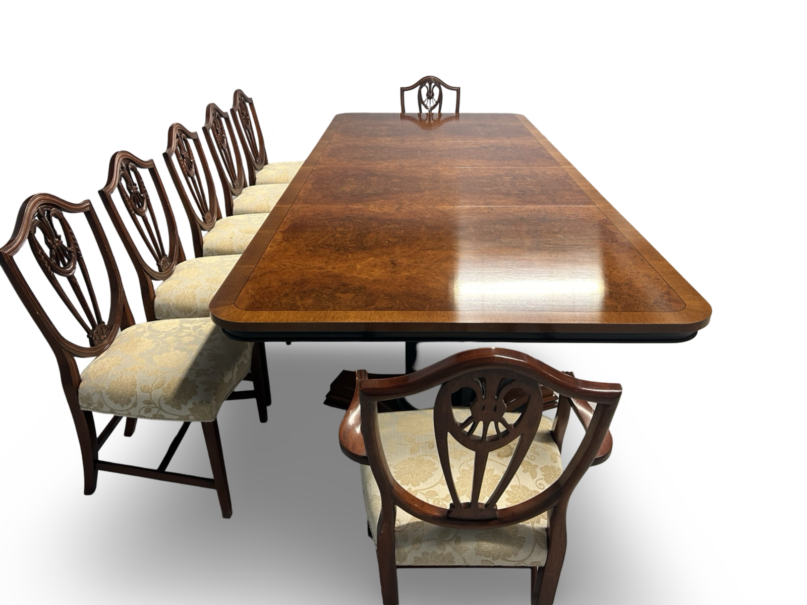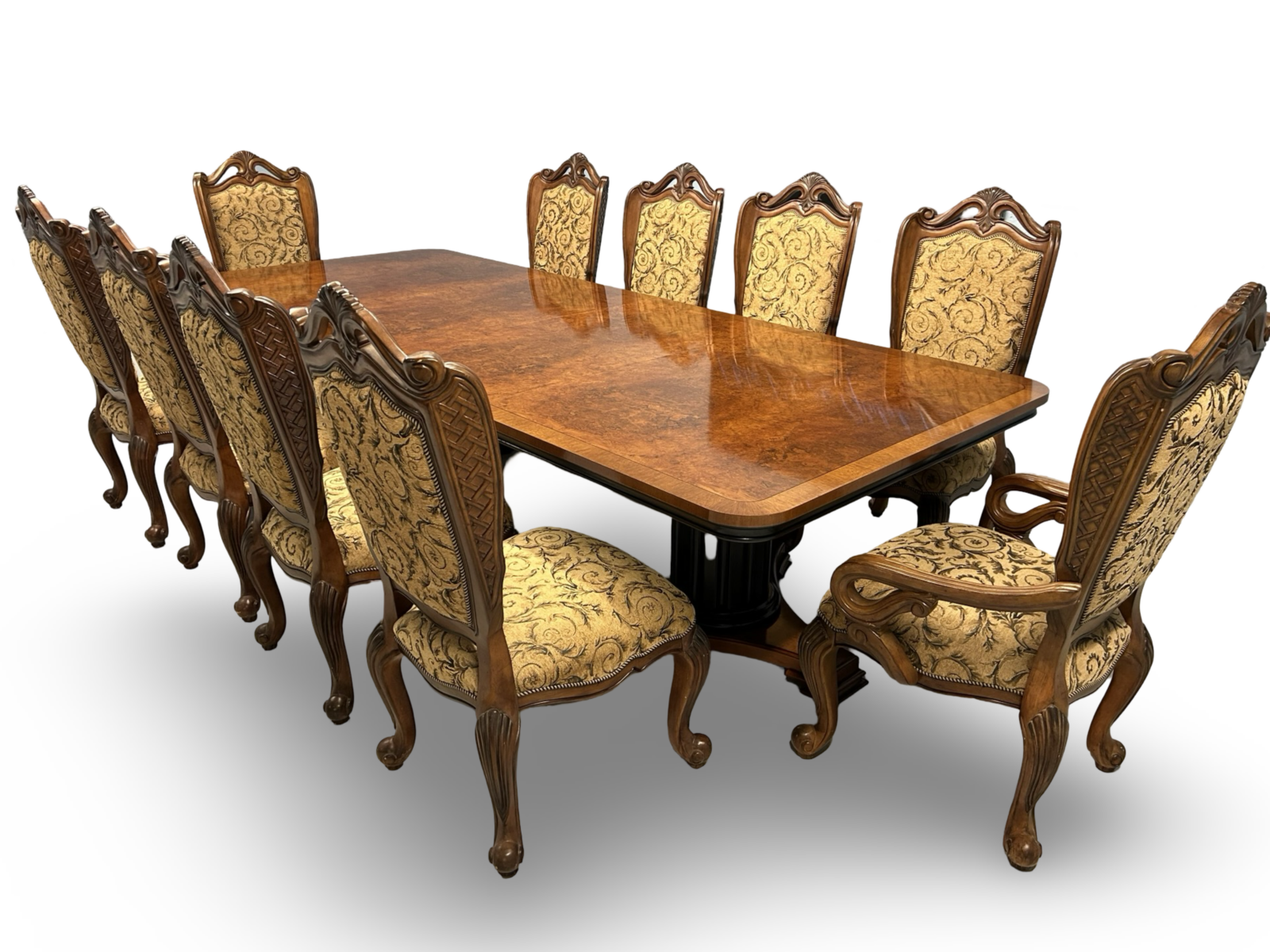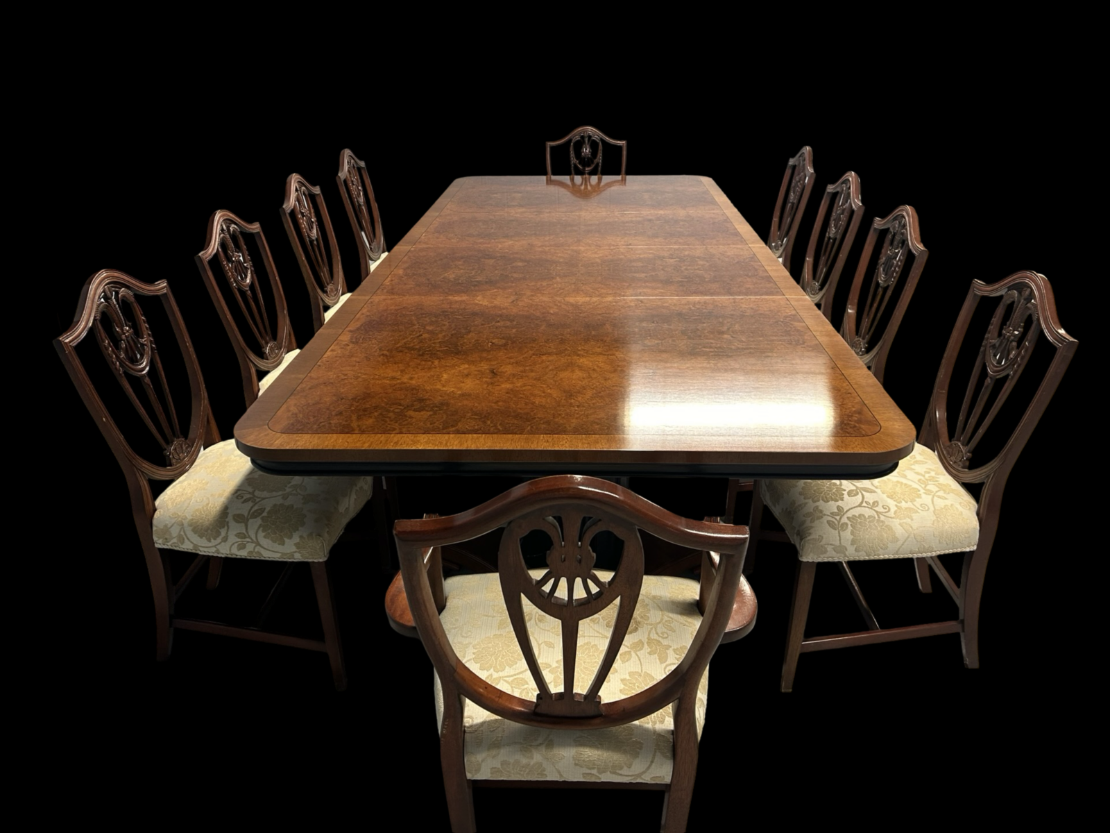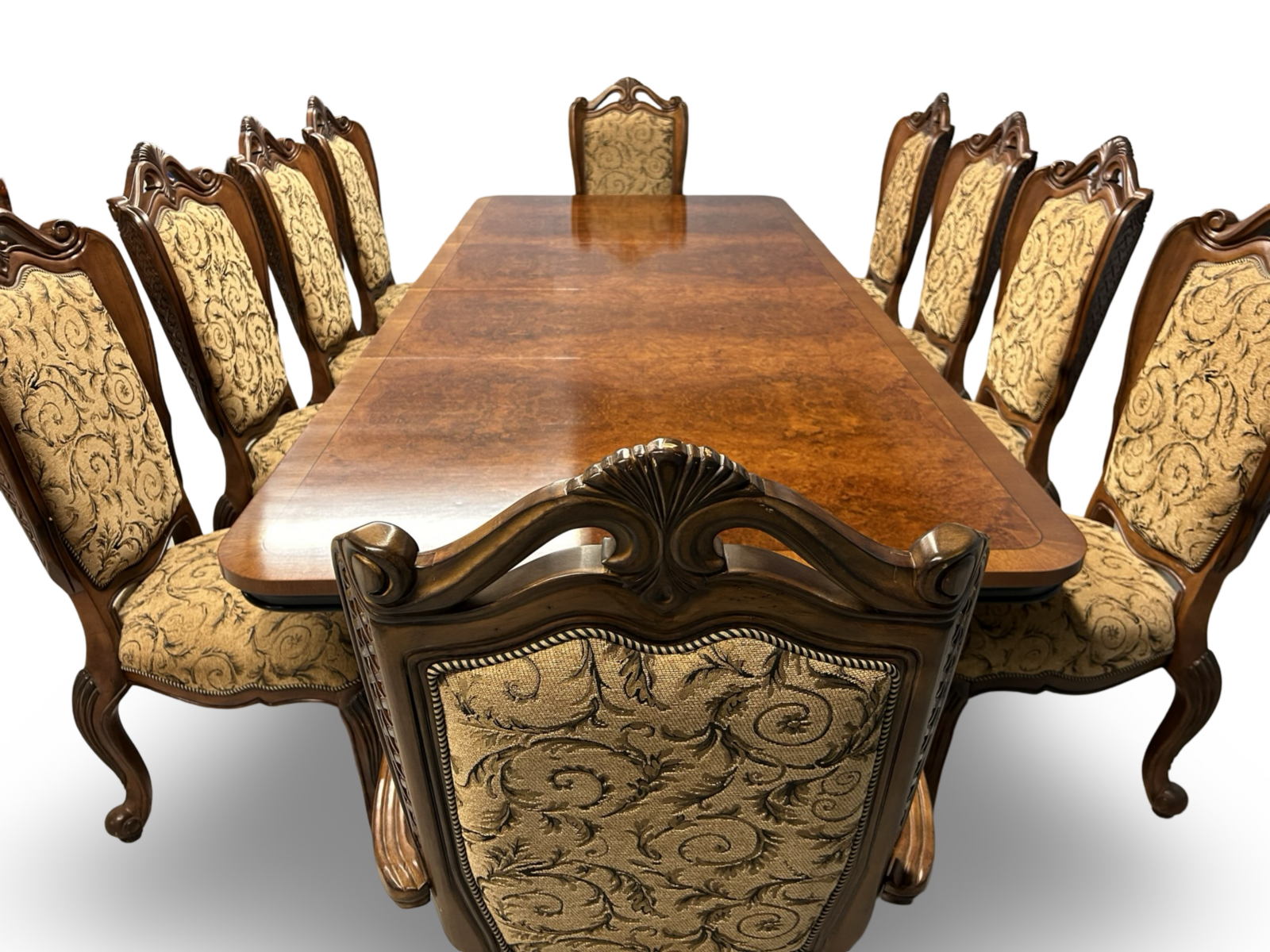 This magnificent table has been professionally hand-finished with the finest modern French polish, delivering a deep, lustrous shine that is both beautiful and durable.
