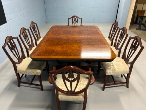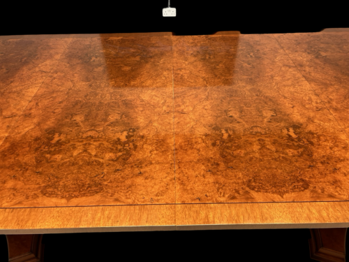 This table showcases Burr Walnut — the most prized and beautiful part of the tree, valued for its swirling, decorative grain. Enhanced by inlaid decoration and the depth of French polishing, it is a true collector’s piece.