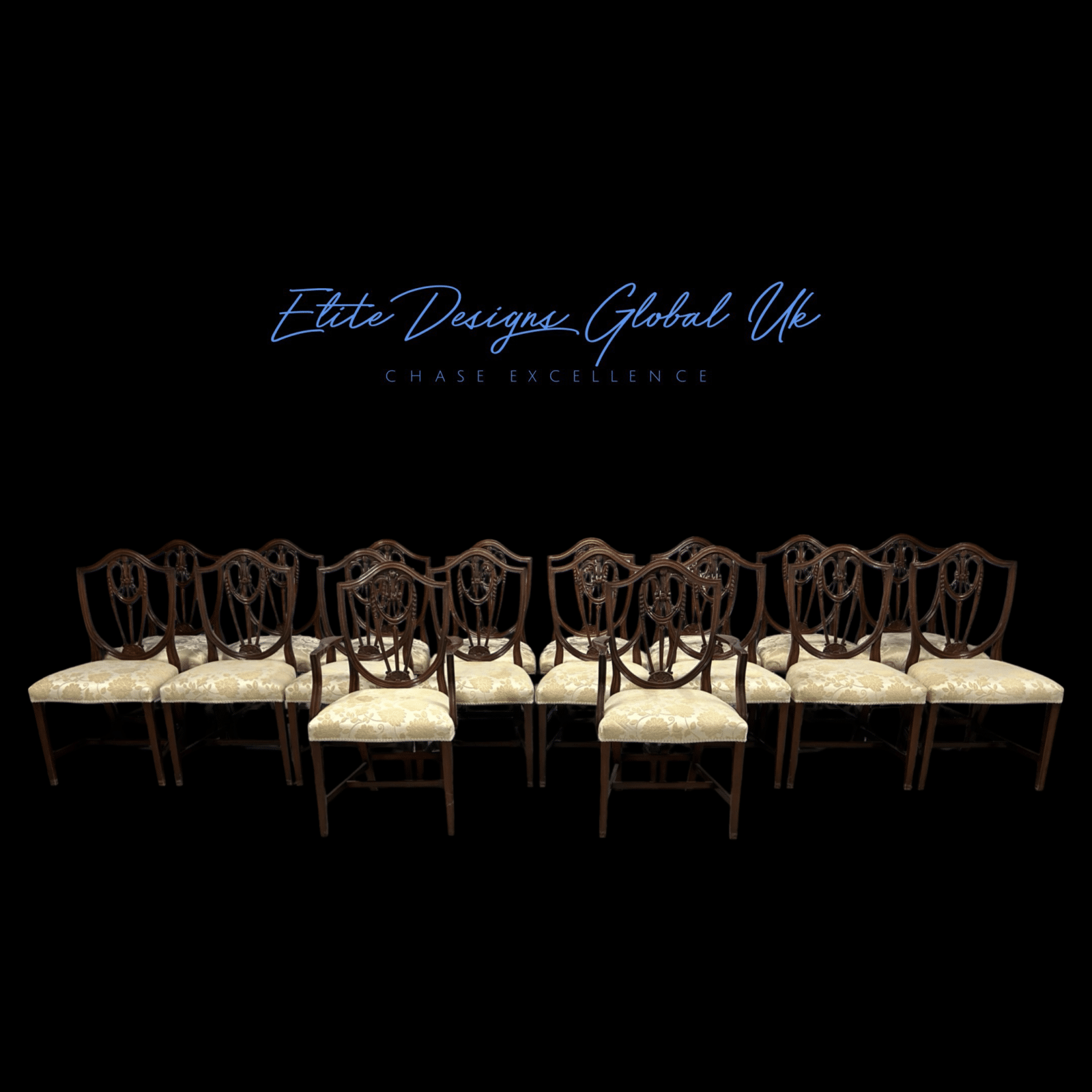 Rare Elite set of 14 Charles II style English Oak red velvet dining chairs