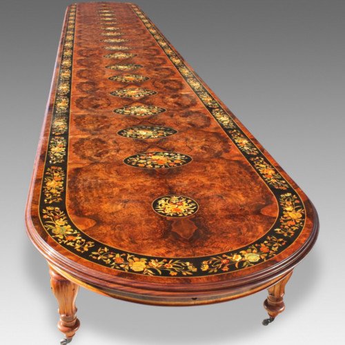 Huge rare 14ft Grand Burr Walnut Victorian dining table.