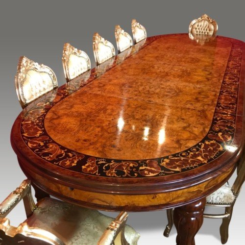 7.3ft Burr Walnut Marquetry dining table