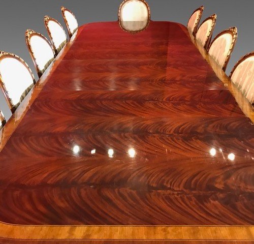8.8ft George III style triple pedestal Mahogany Grand dining table