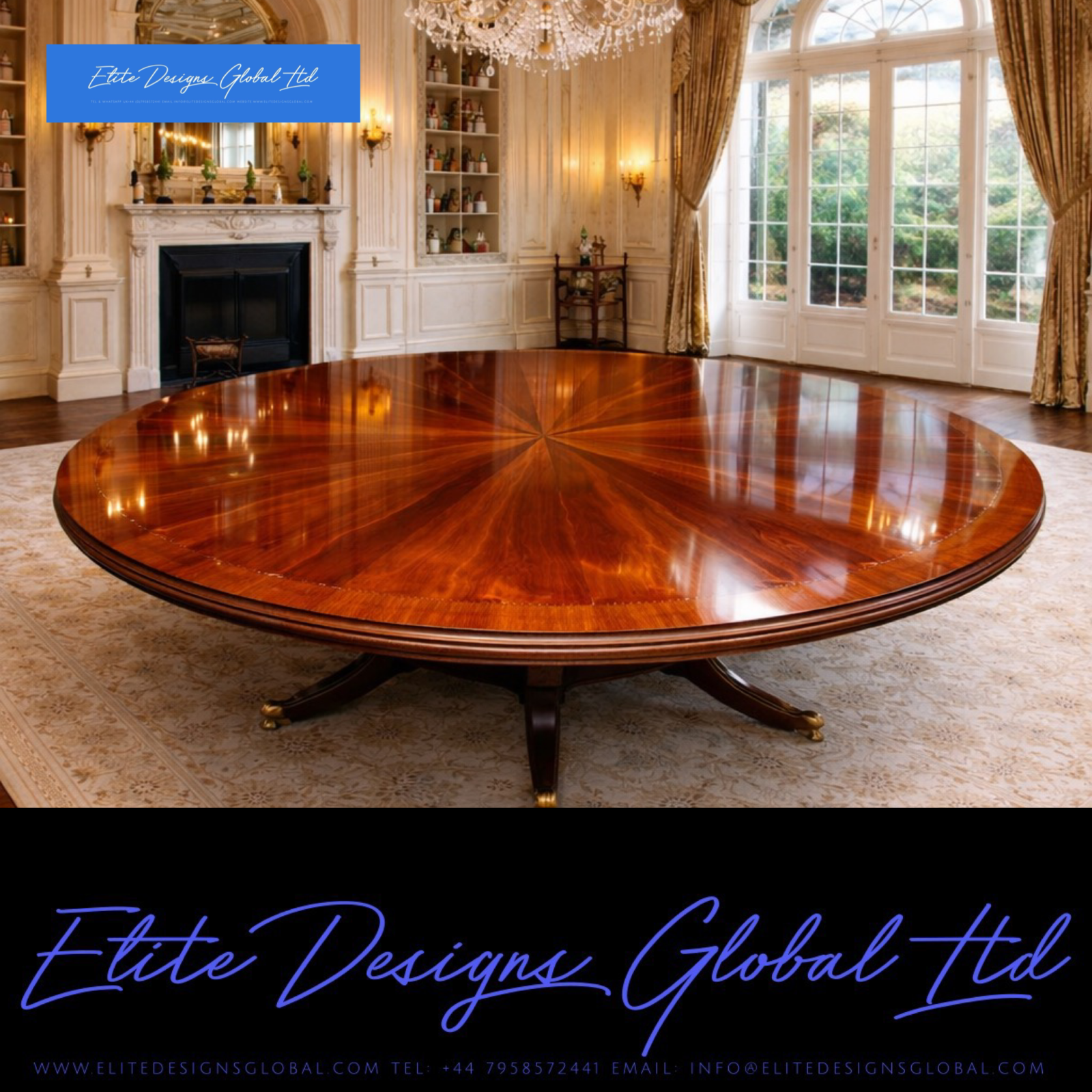 Magnificent 9ft Grand Circular Sunburst Mahogany Table – A Historically Significant Masterpiece