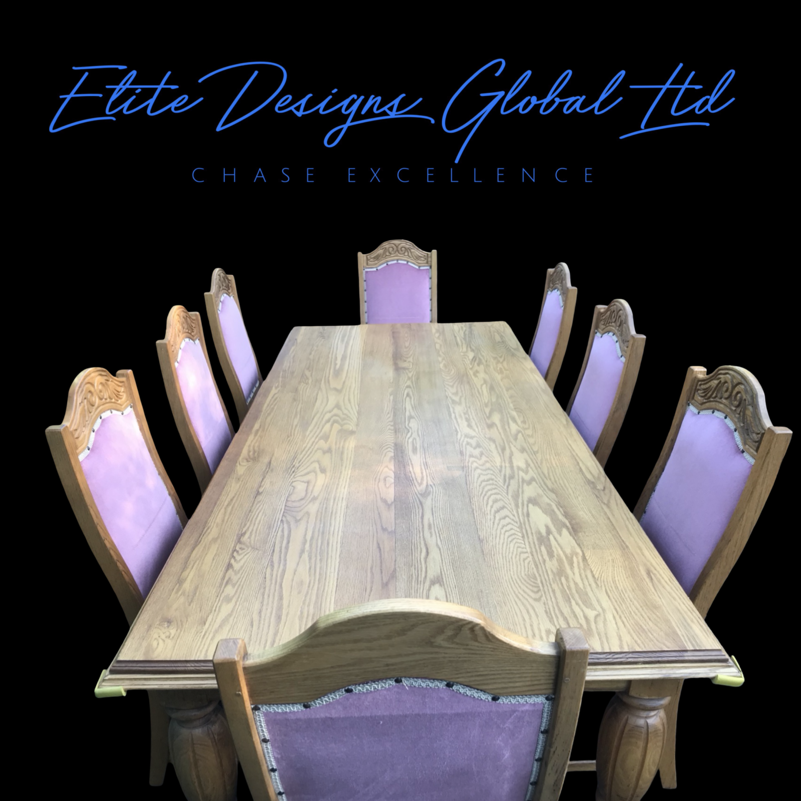 The Harrods Oak Grand 9ft Dining Table Set. A Statement of Traditional English Craftsmanship